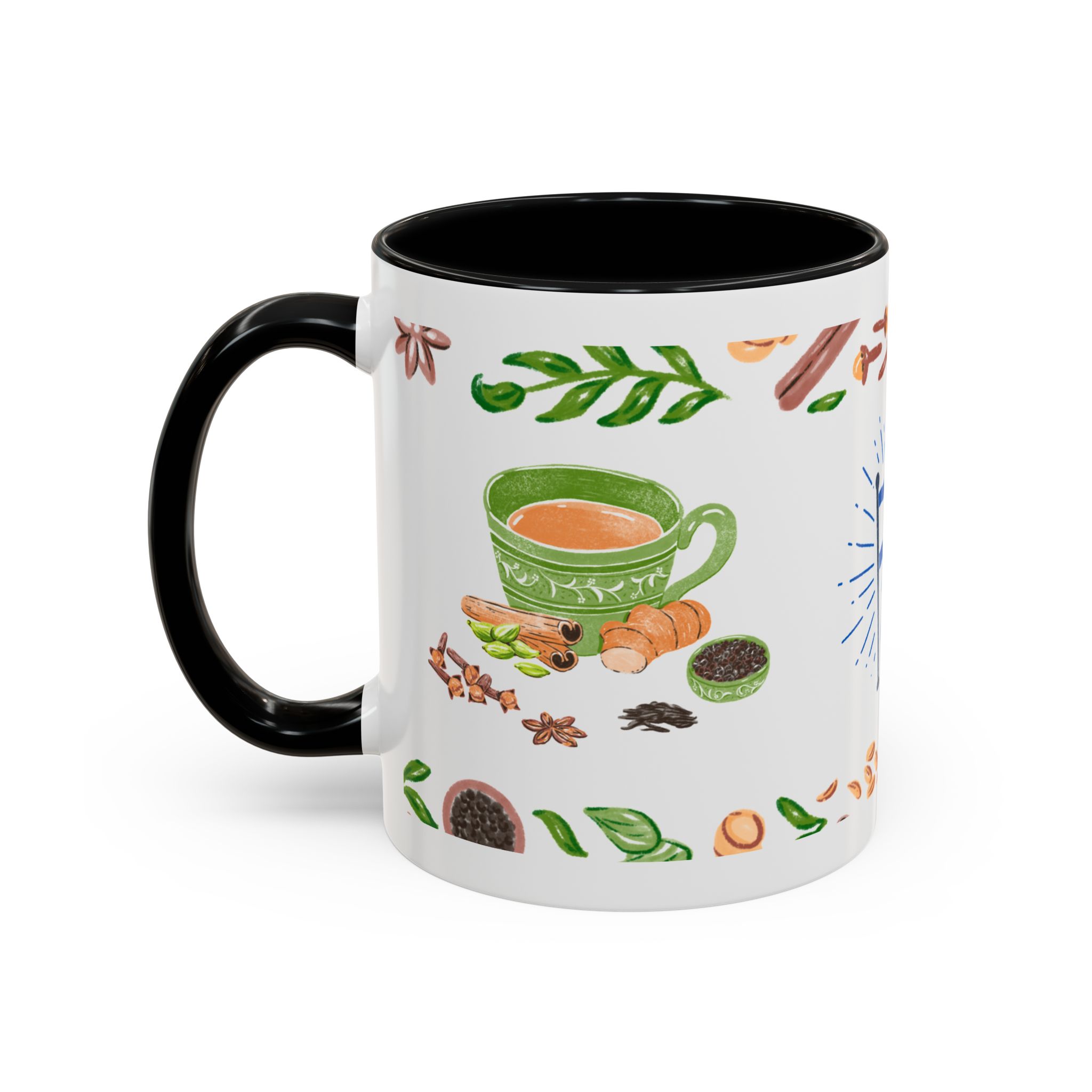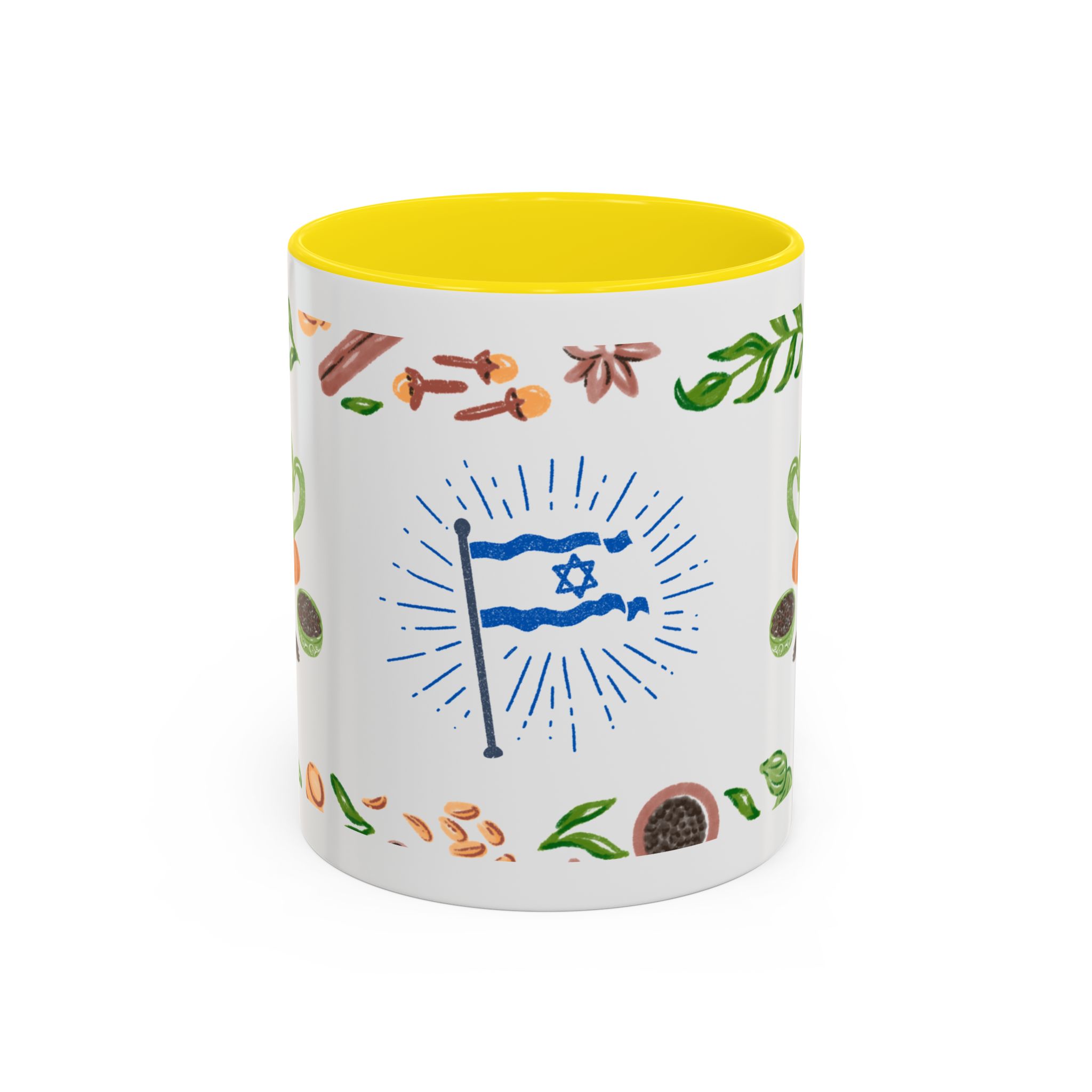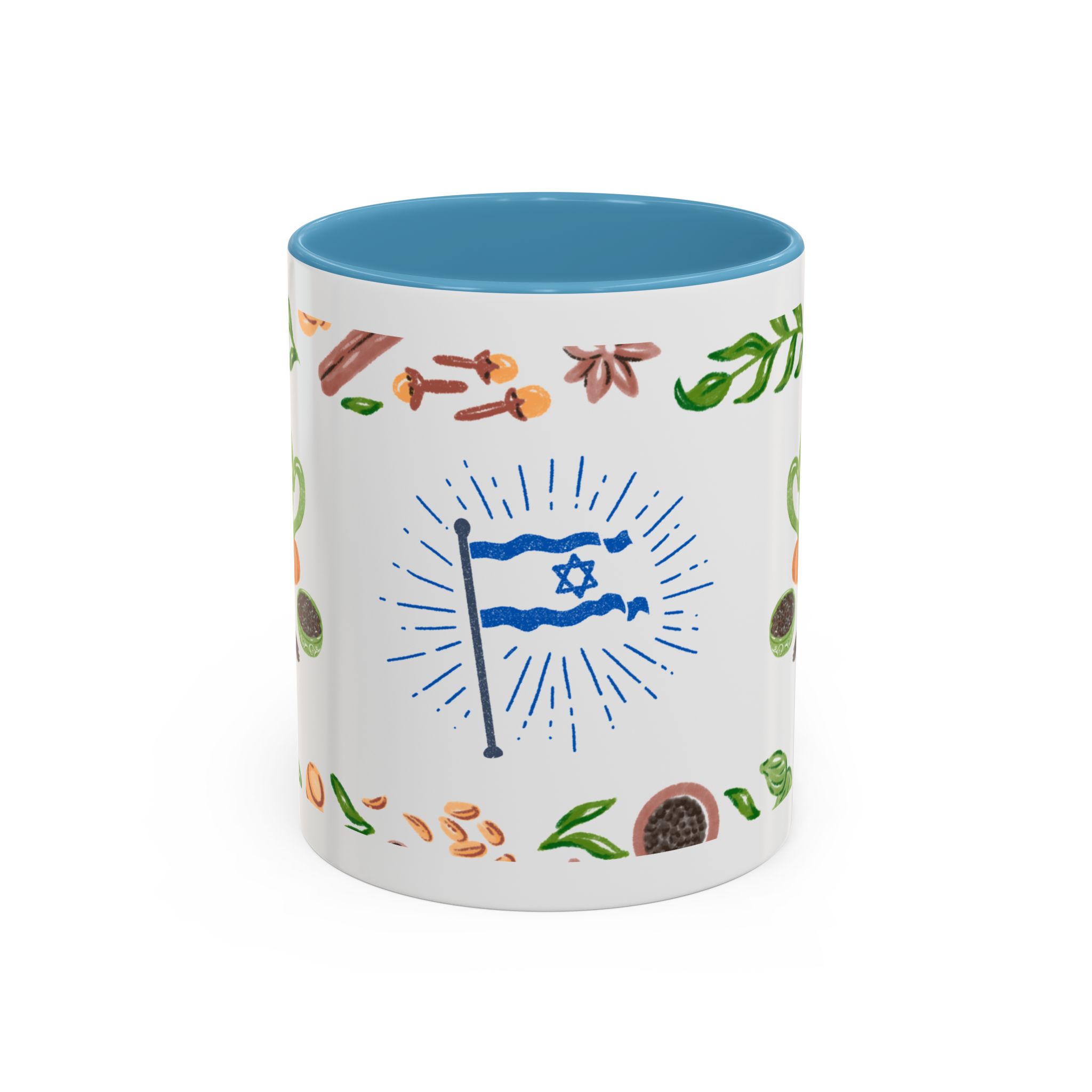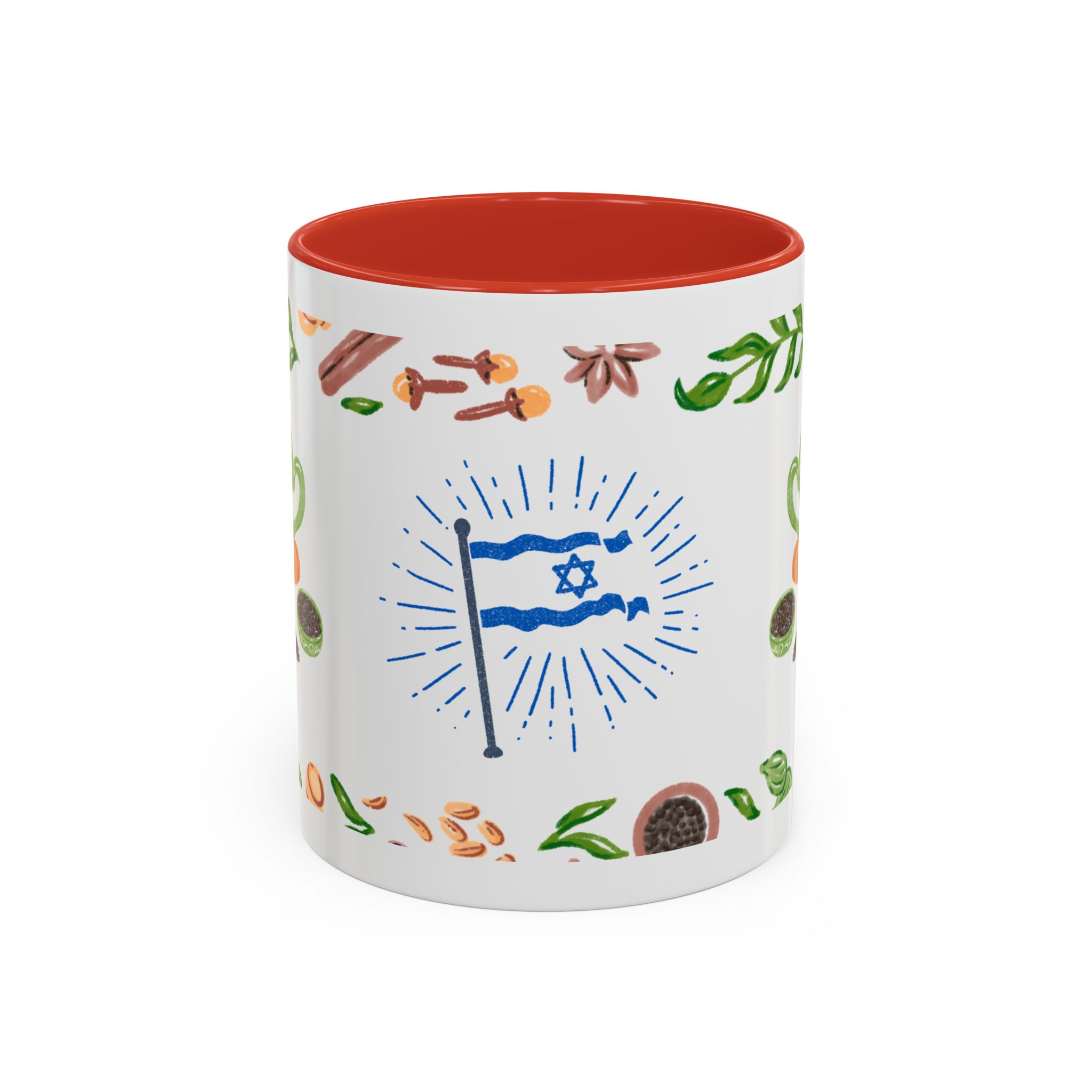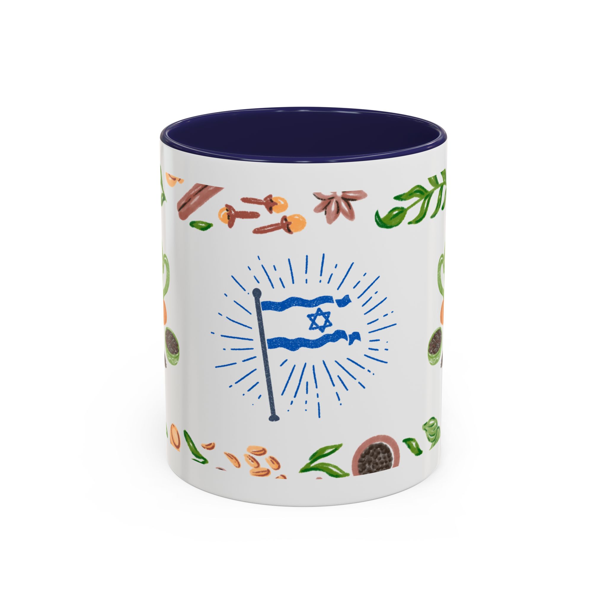 Enjoy warm chai moments with this ceramic accent mug. It features hand-painted chai cups, spices, and an Israeli flag design that adds meaning and charm. The glossy white mug with a colored interior and handle feels cozy and cheerful. Perfect for tea, coffee, or cocoa, and a thoughtful gift for chai lovers and everyday rituals.