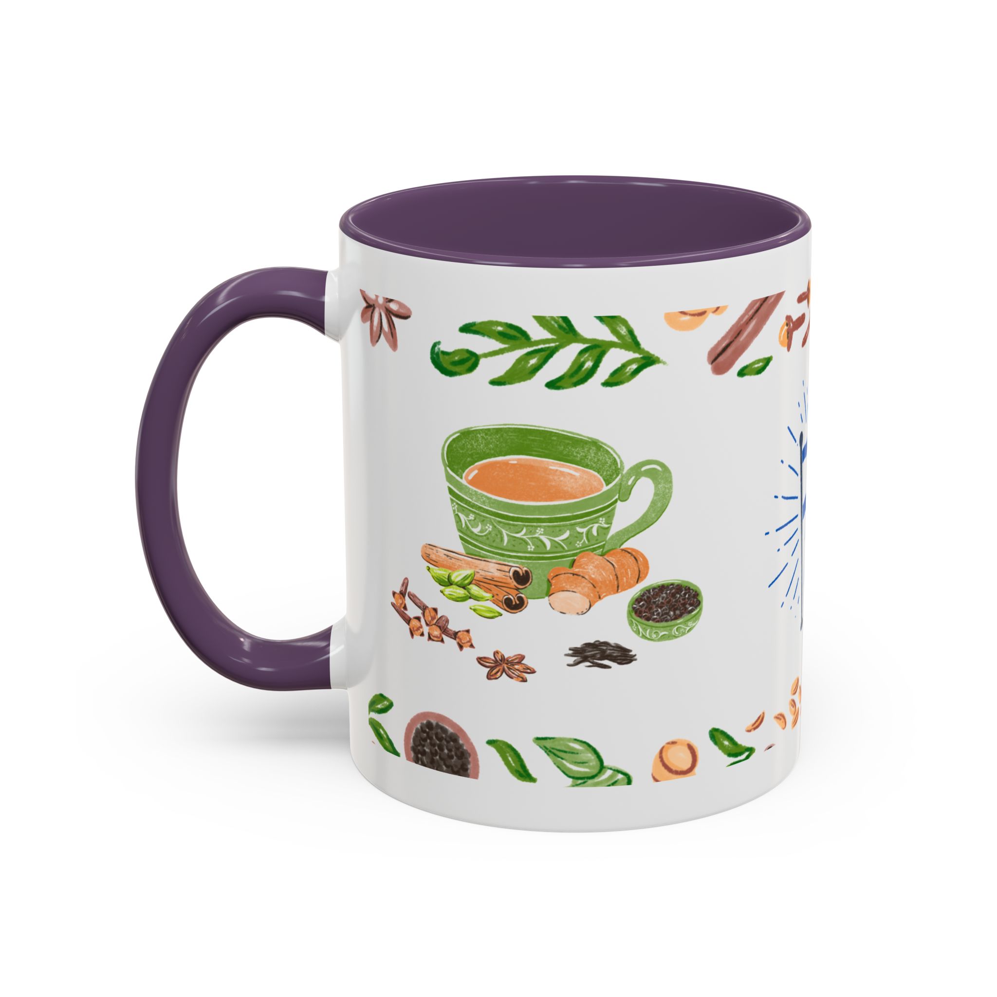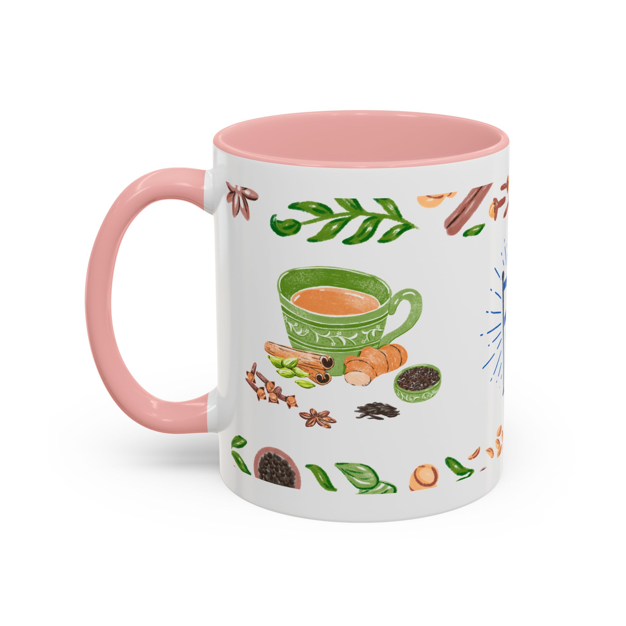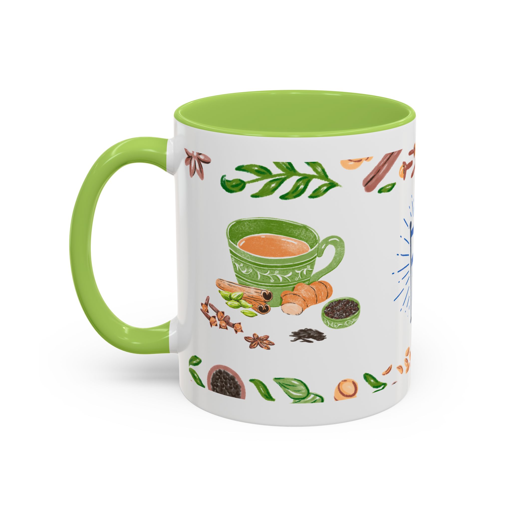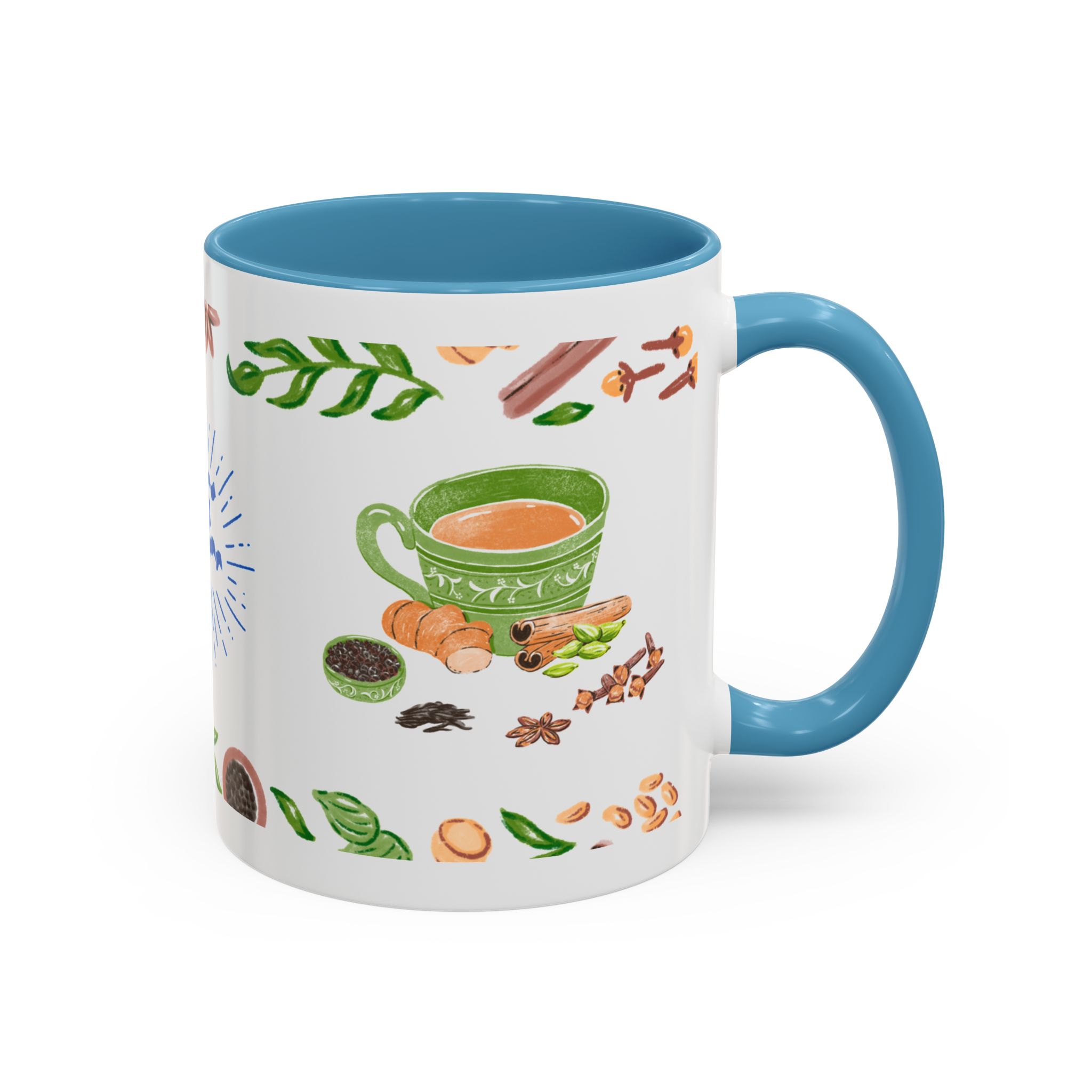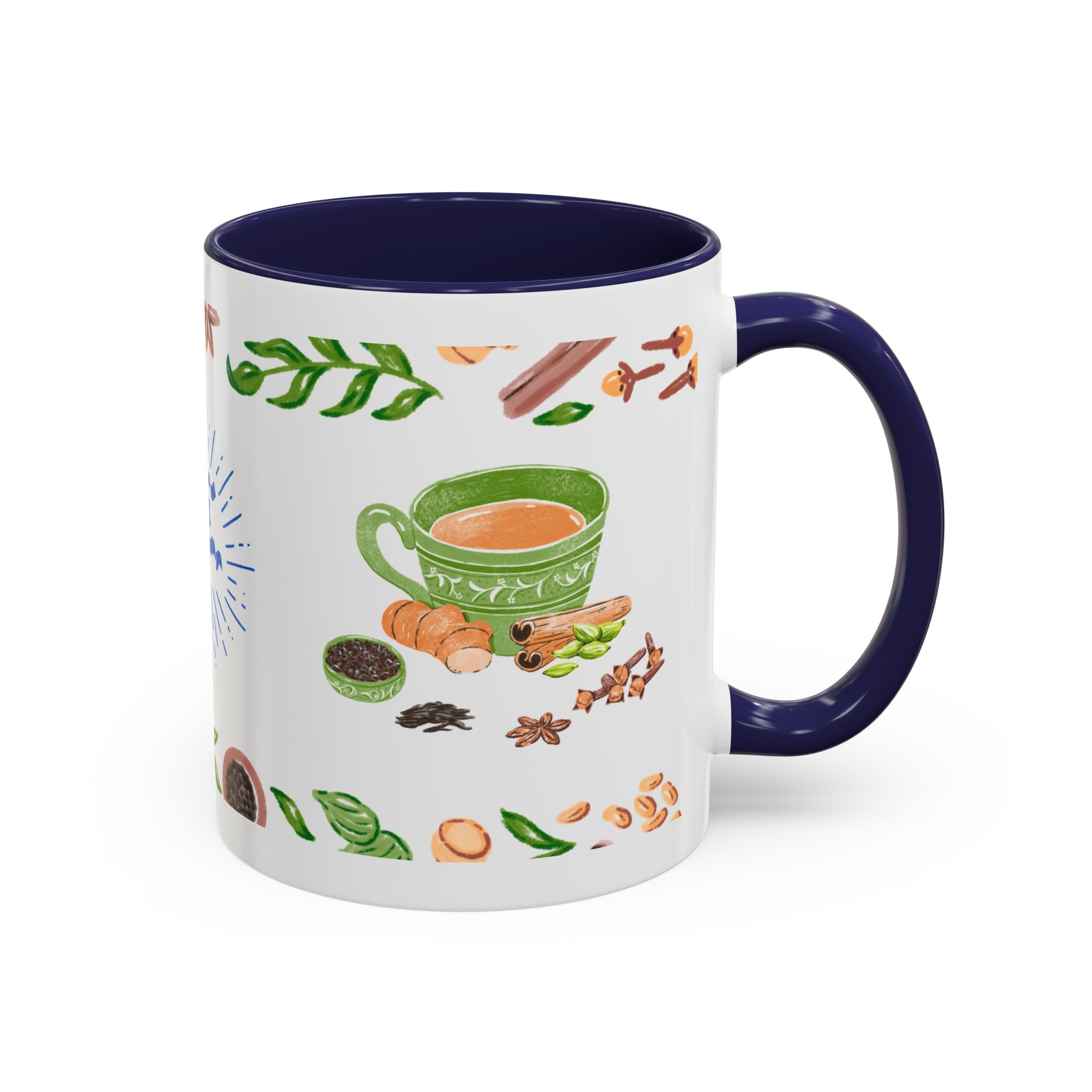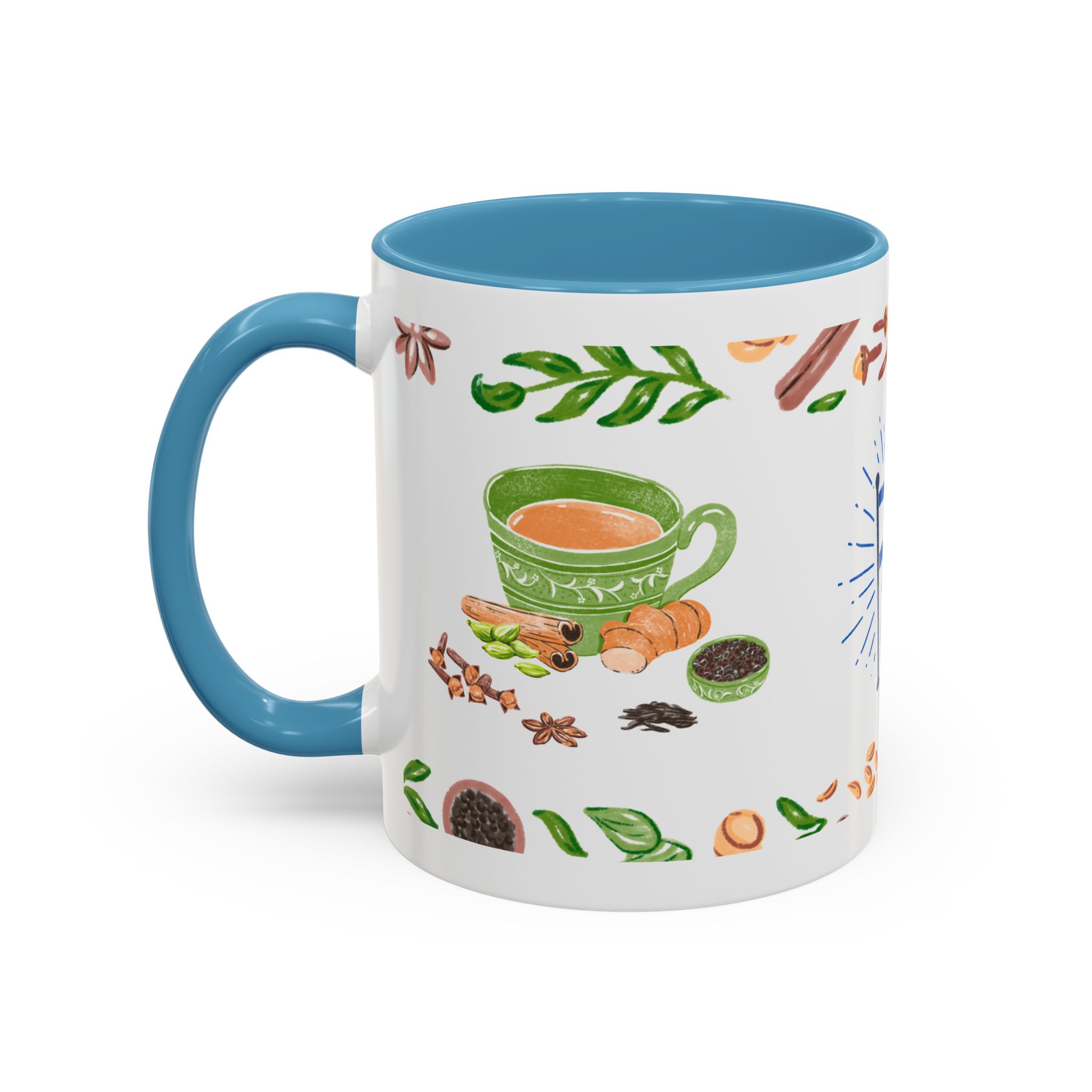 Enjoy warm chai moments with this ceramic accent mug. It features hand-painted chai cups, spices, and an Israeli flag design that adds meaning and charm. The glossy white mug with a colored interior and handle feels cozy and cheerful. Perfect for tea, coffee, or cocoa, and a thoughtful gift for chai lovers and everyday rituals.
