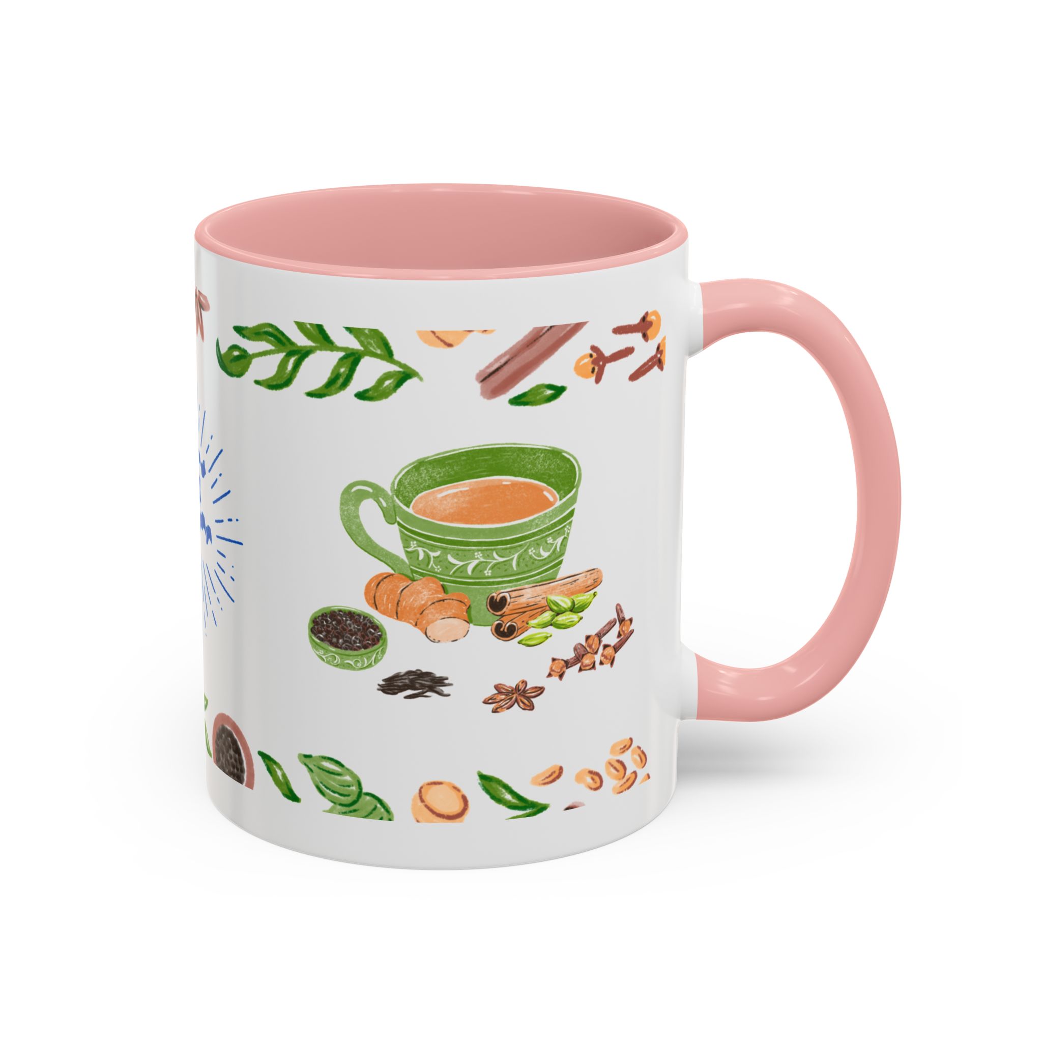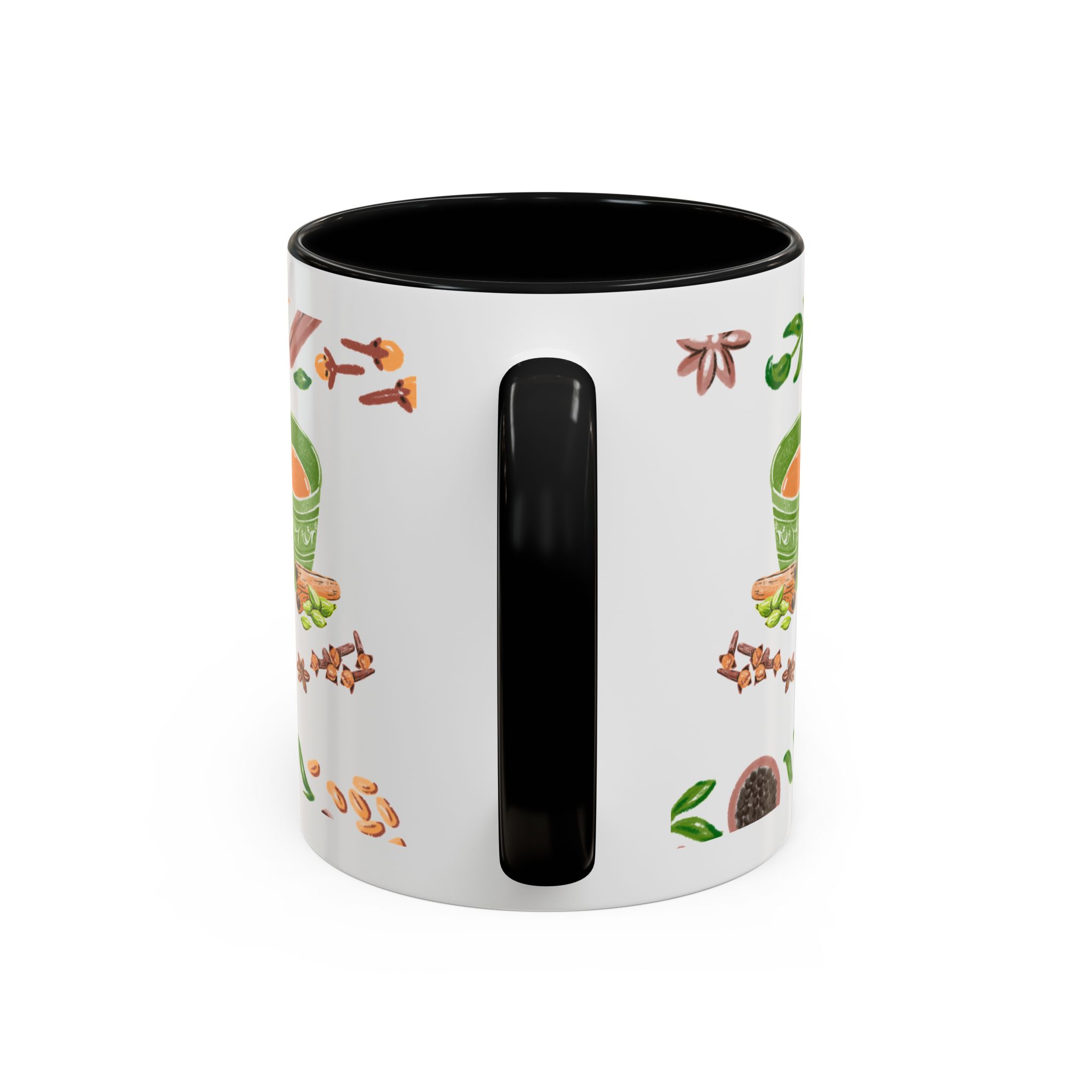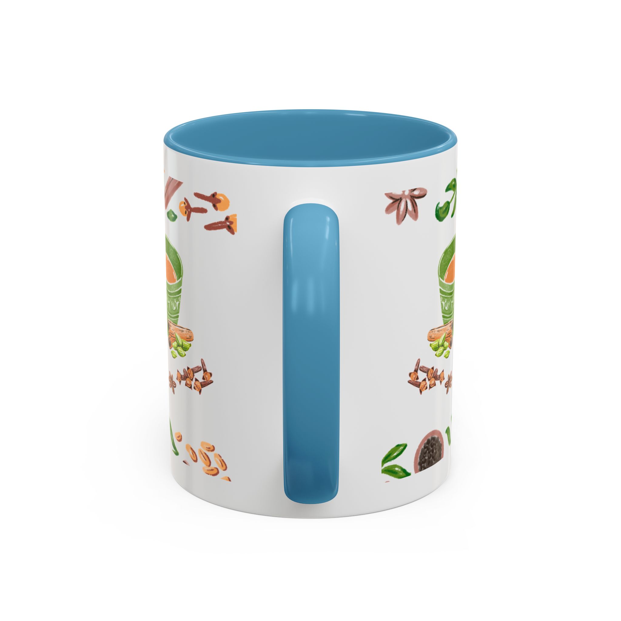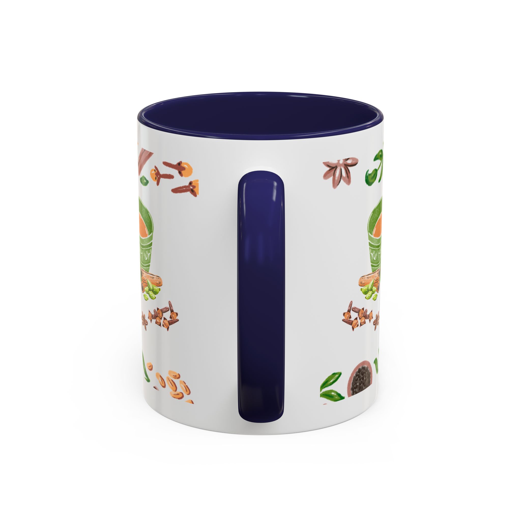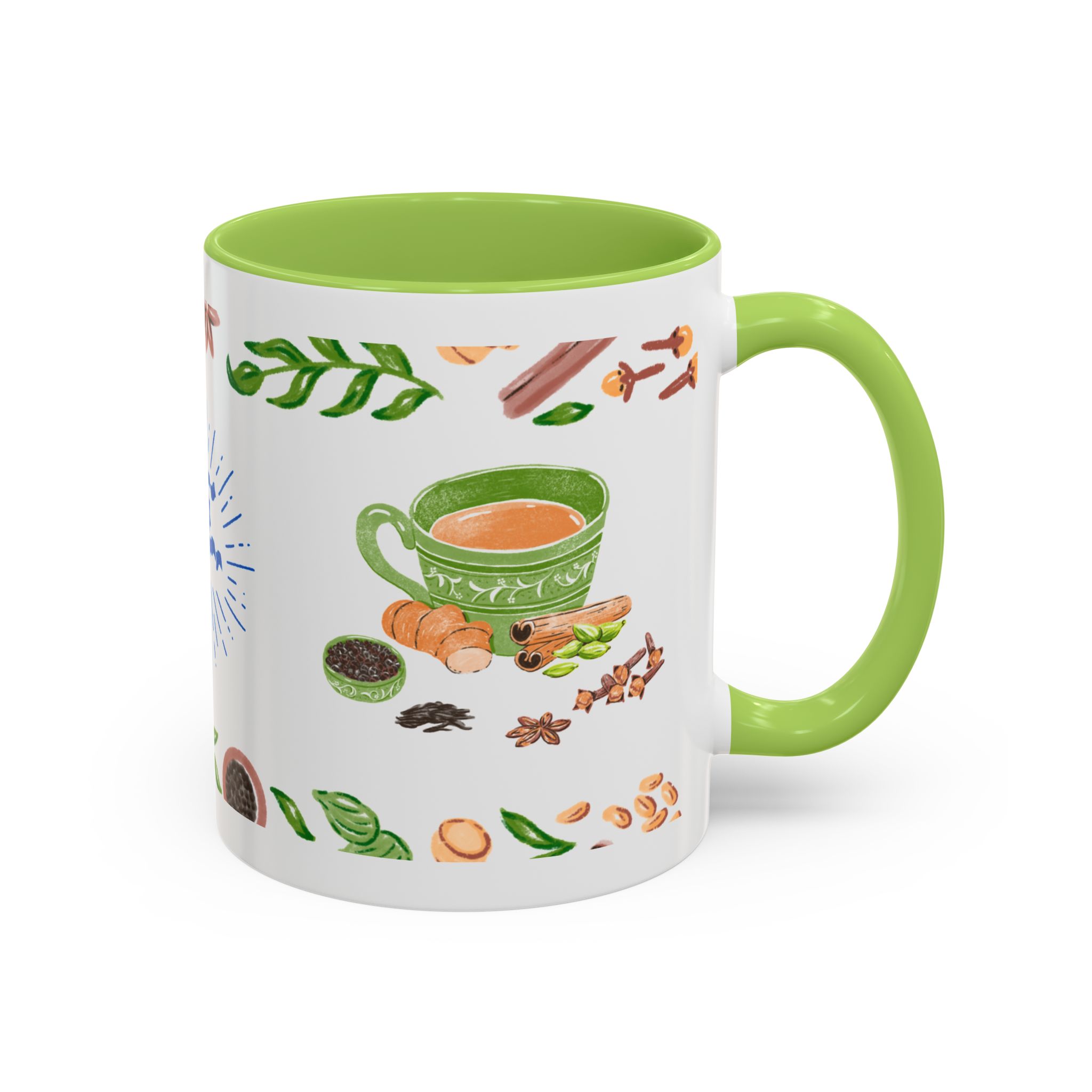 Enjoy warm chai moments with this ceramic accent mug. It features hand-painted chai cups, spices, and an Israeli flag design that adds meaning and charm. The glossy white mug with a colored interior and handle feels cozy and cheerful. Perfect for tea, coffee, or cocoa, and a thoughtful gift for chai lovers and everyday rituals.