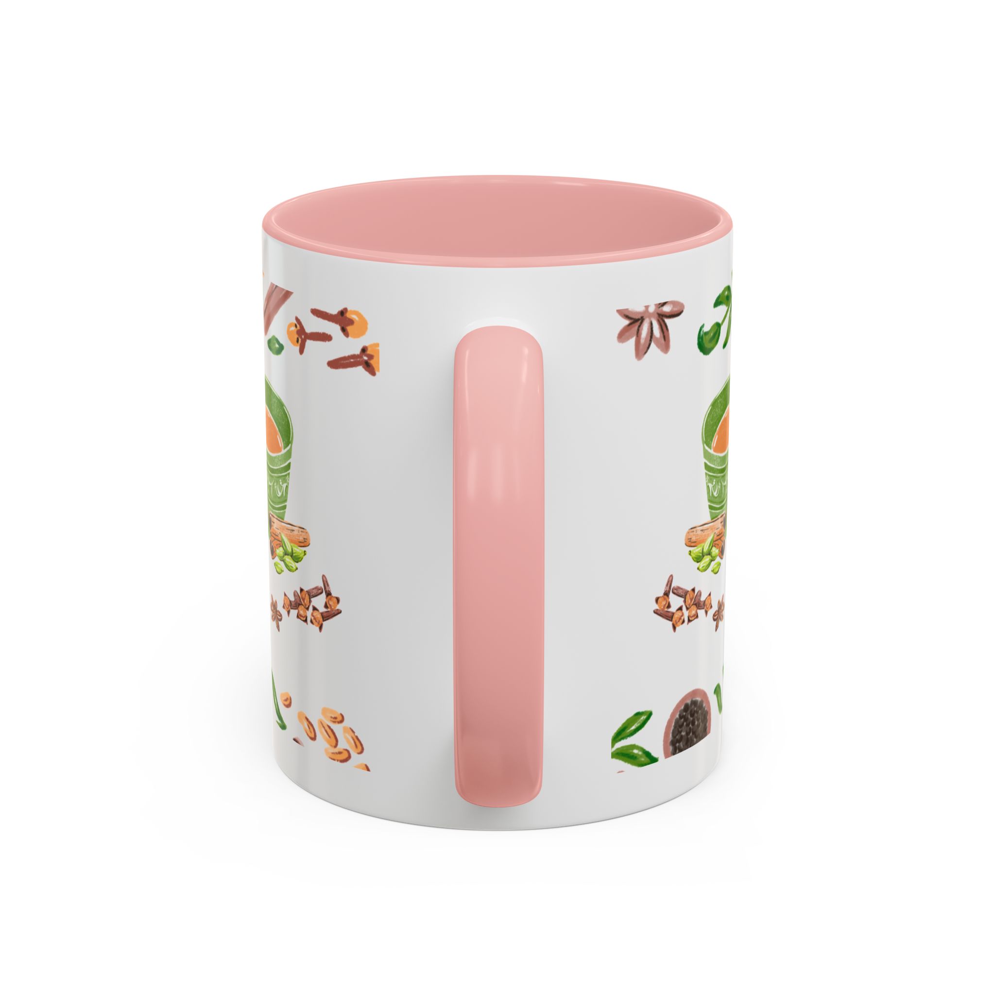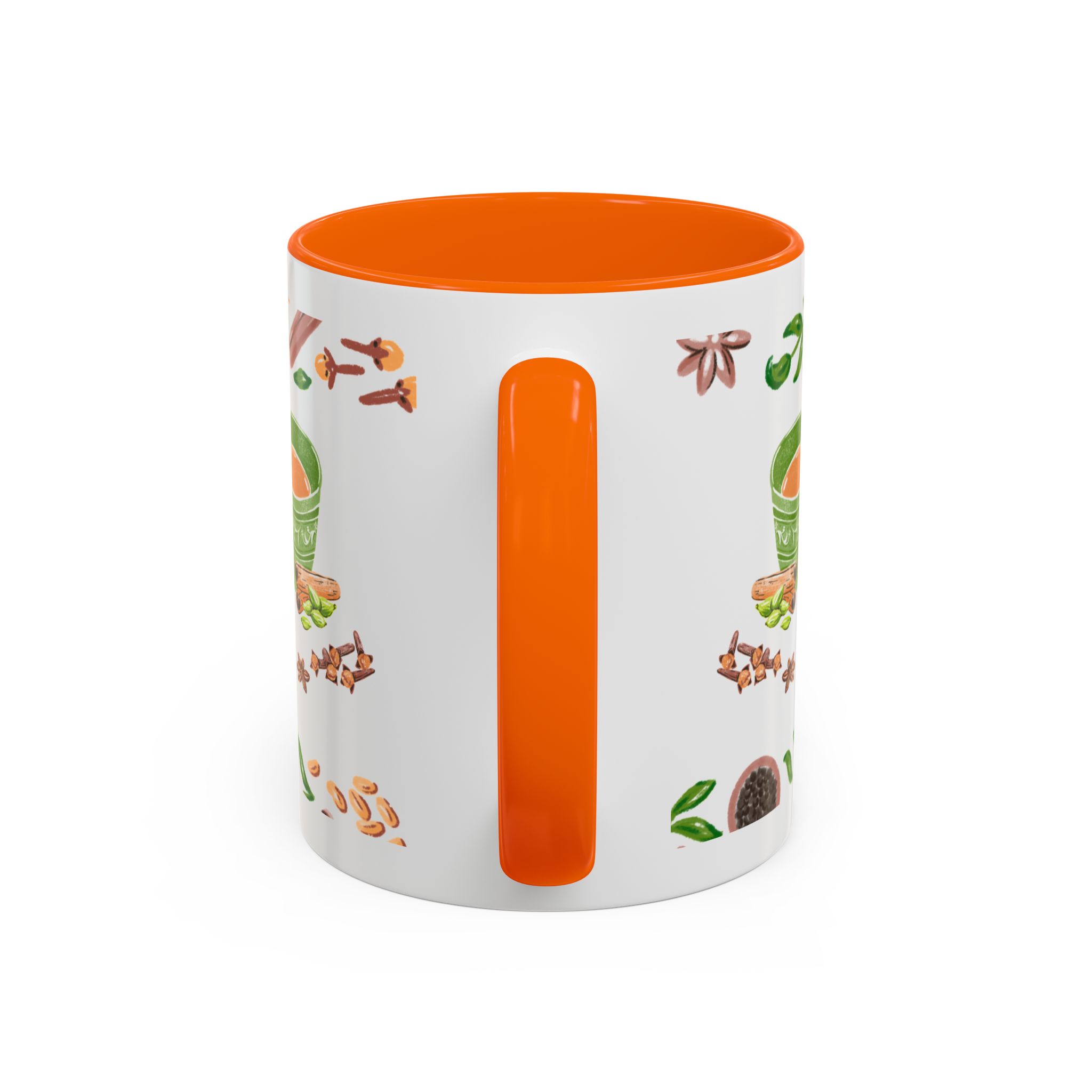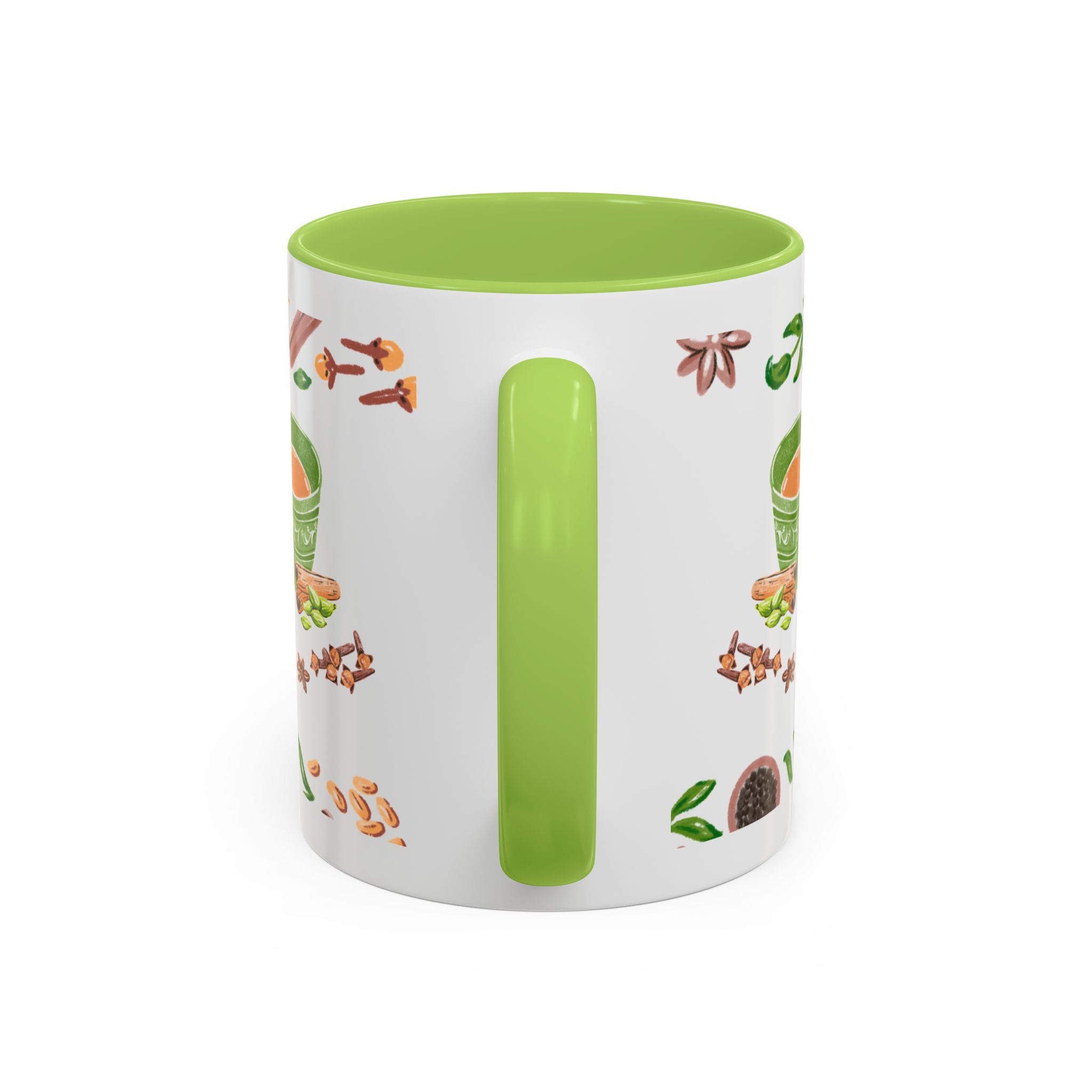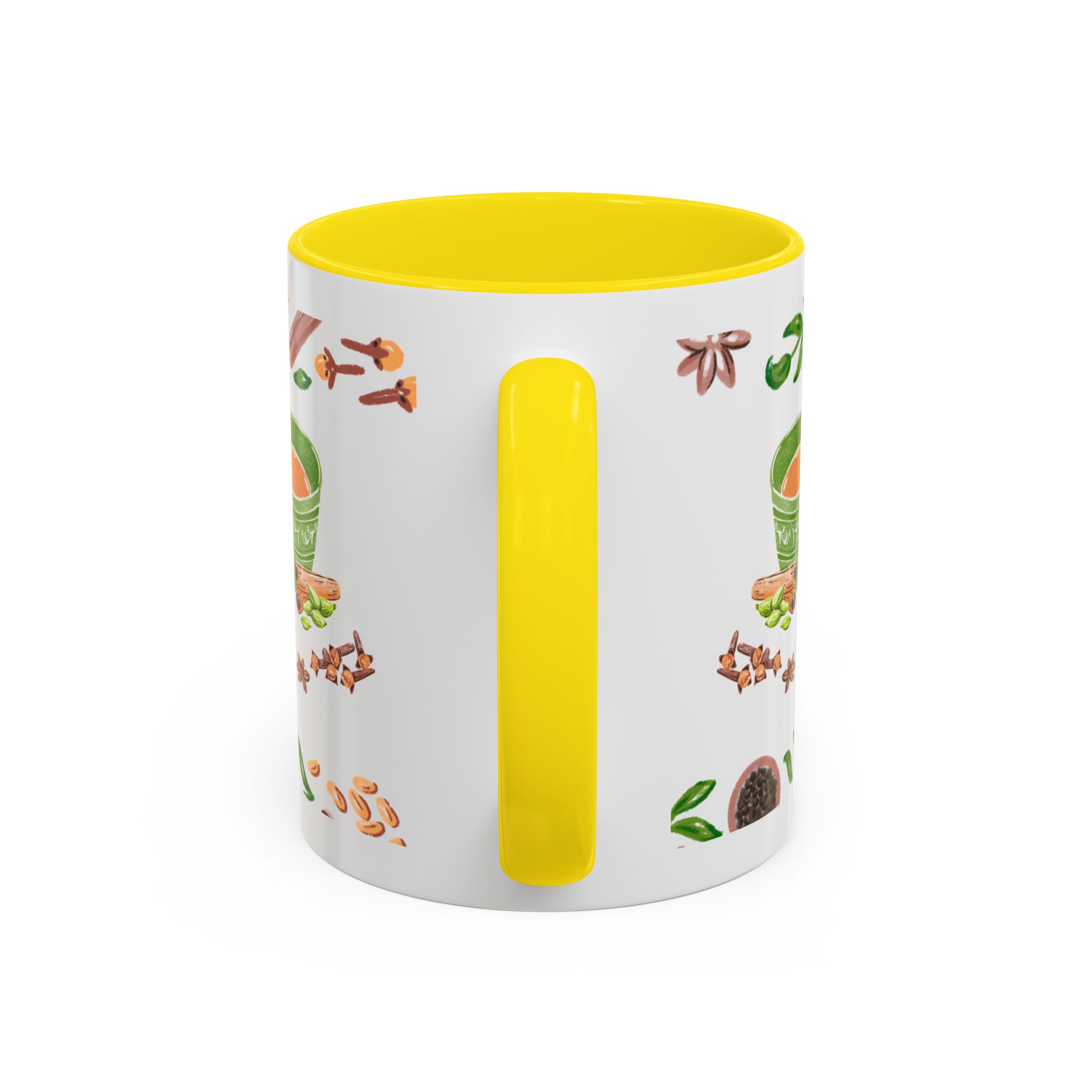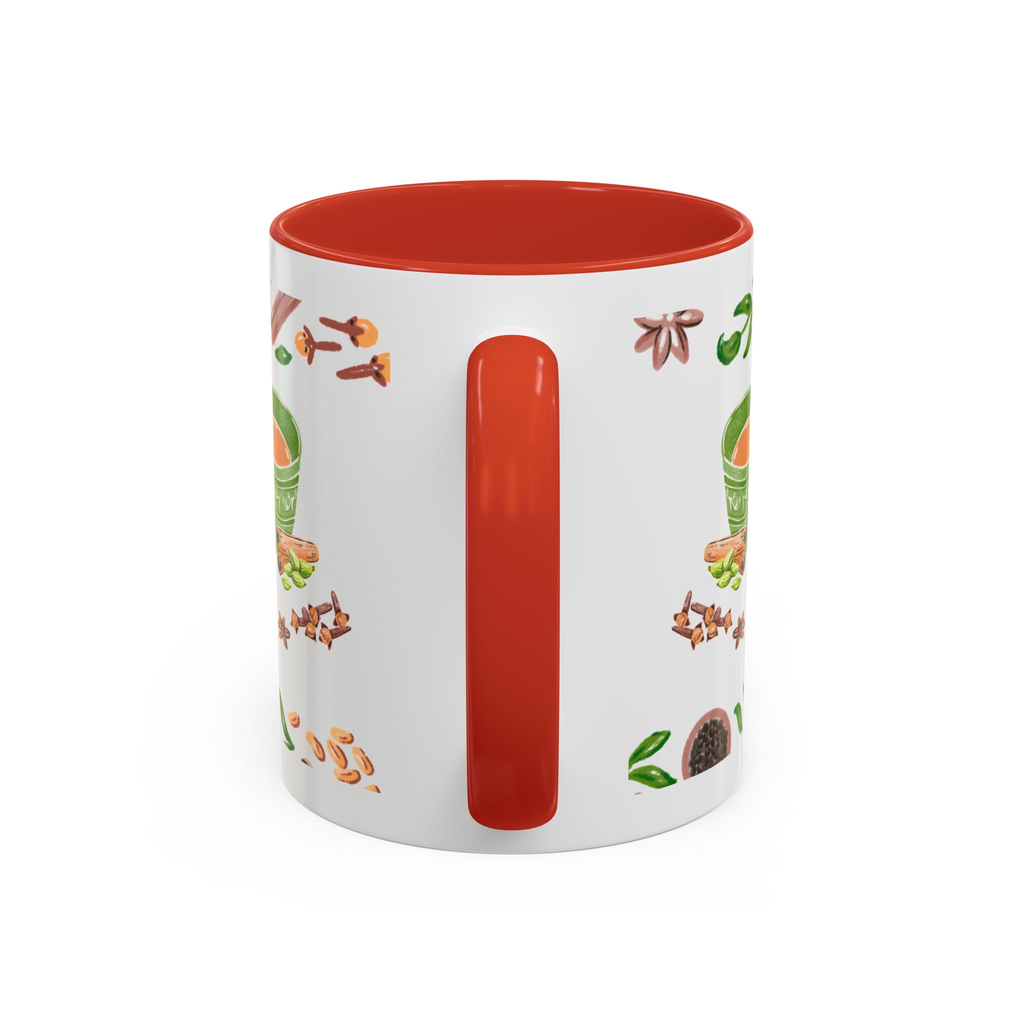 Enjoy warm chai moments with this ceramic accent mug. It features hand-painted chai cups, spices, and an Israeli flag design that adds meaning and charm. The glossy white mug with a colored interior and handle feels cozy and cheerful. Perfect for tea, coffee, or cocoa, and a thoughtful gift for chai lovers and everyday rituals.