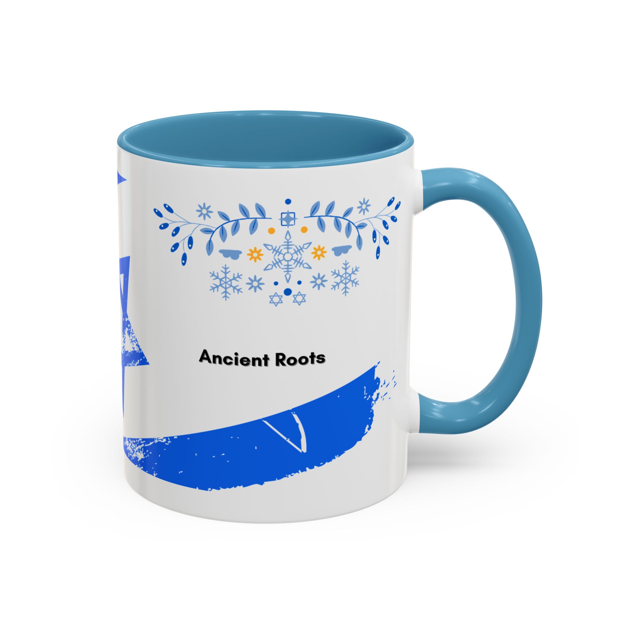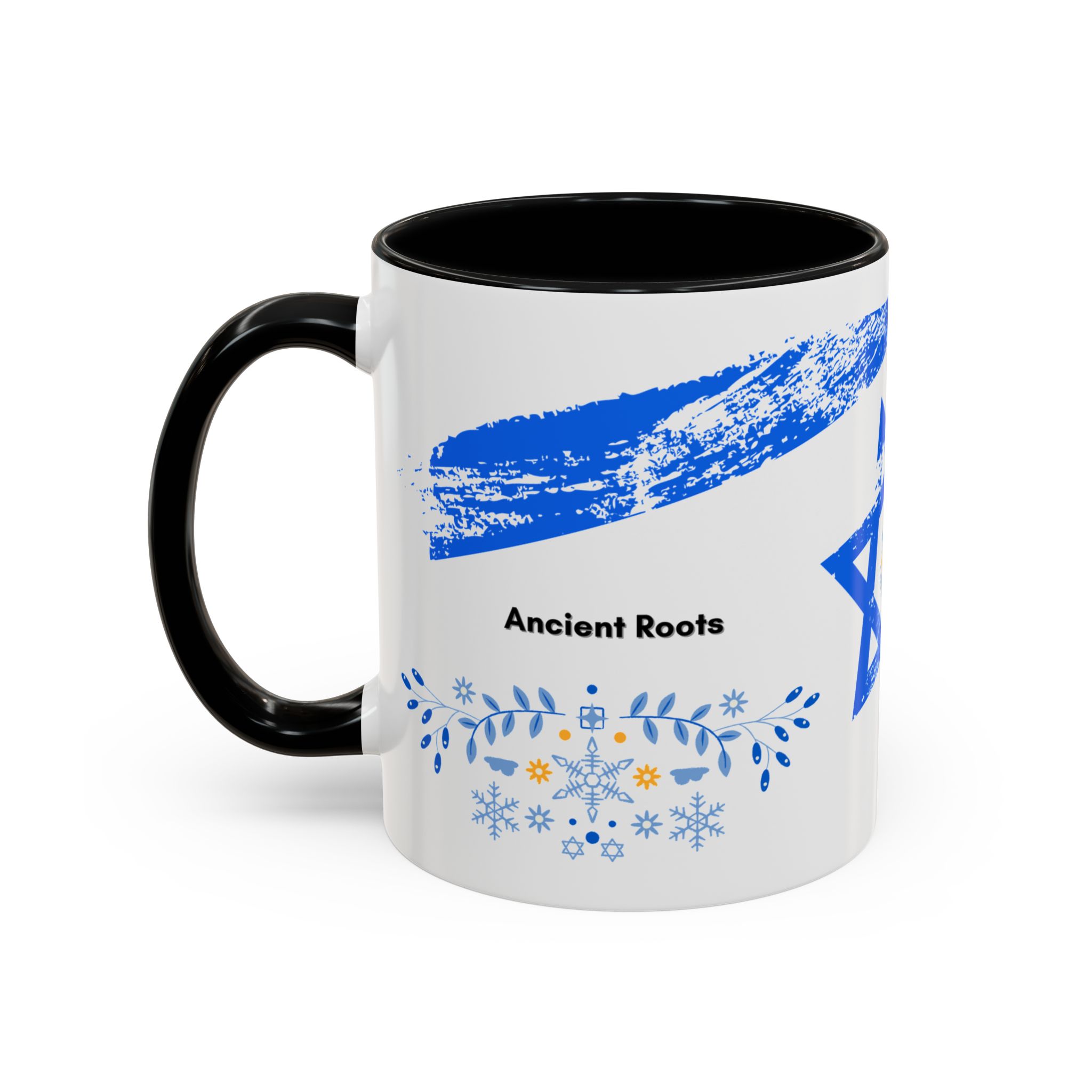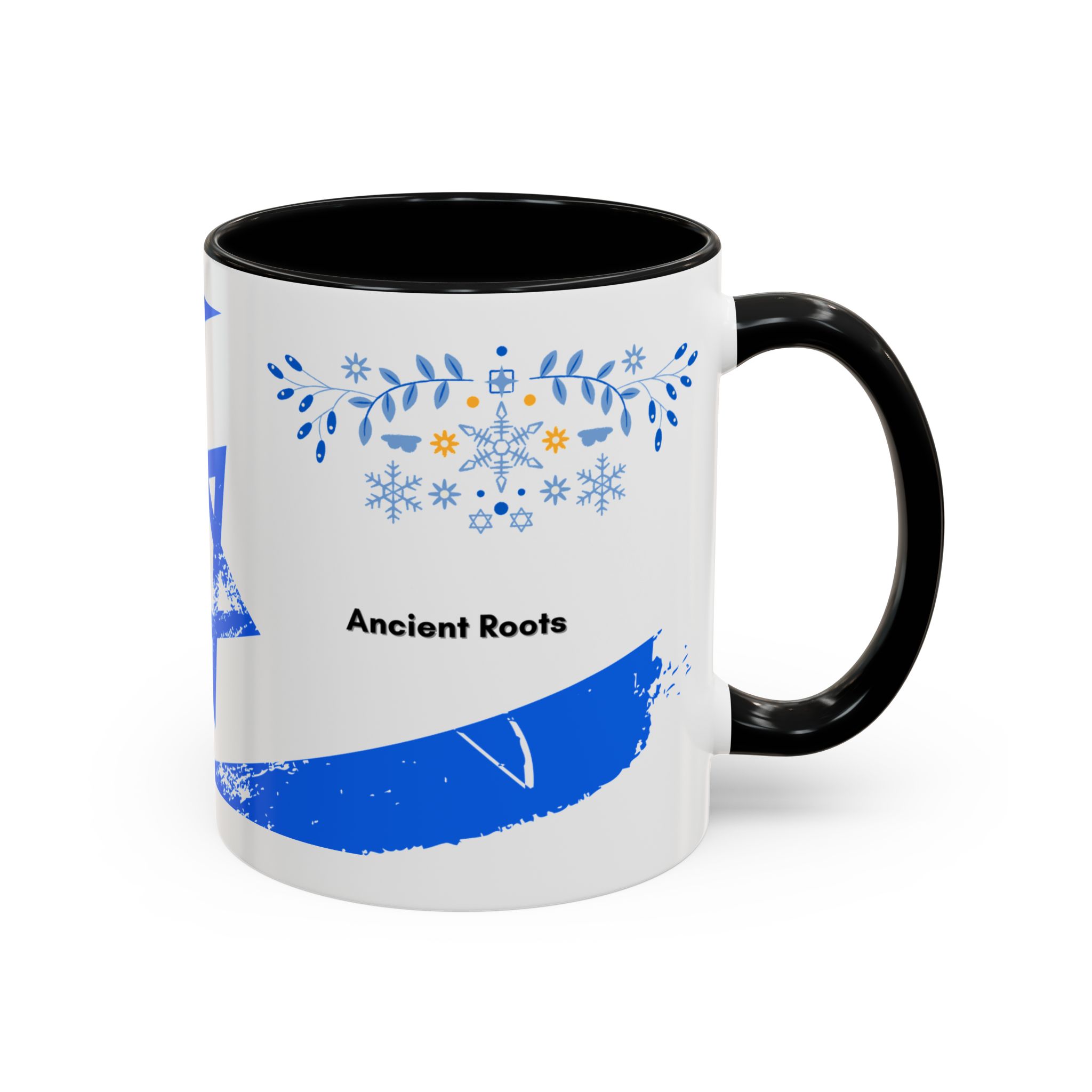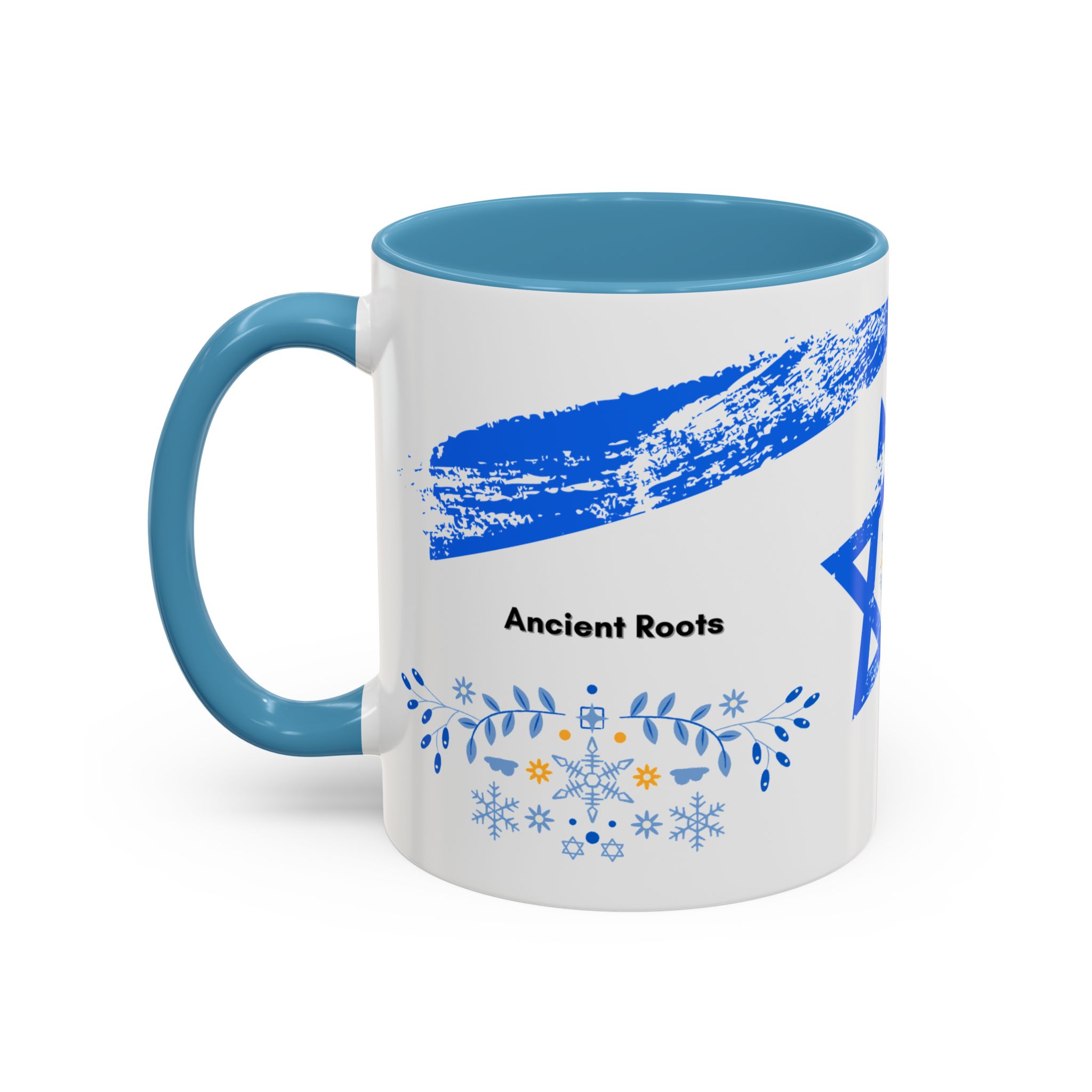 Start your day with a quiet touch of tradition. This ceramic accent mug features a distressed blue Star of David with soft folk-floral details. The glossy white exterior and bold colored interior and handle make the design stand out. Comfortable to hold and perfect for daily coffee or tea, it’s a meaningful mug for everyday moments and holiday mornings.