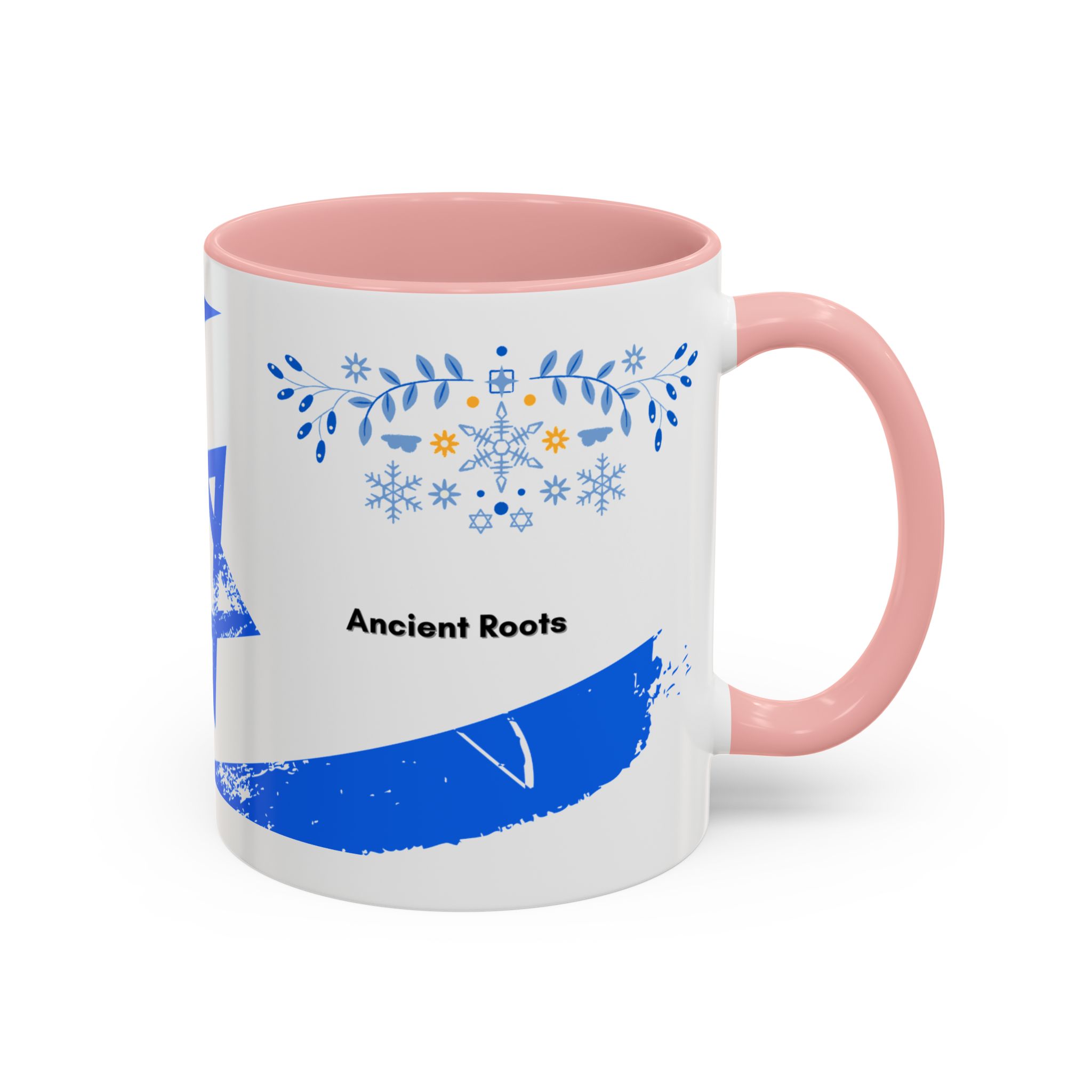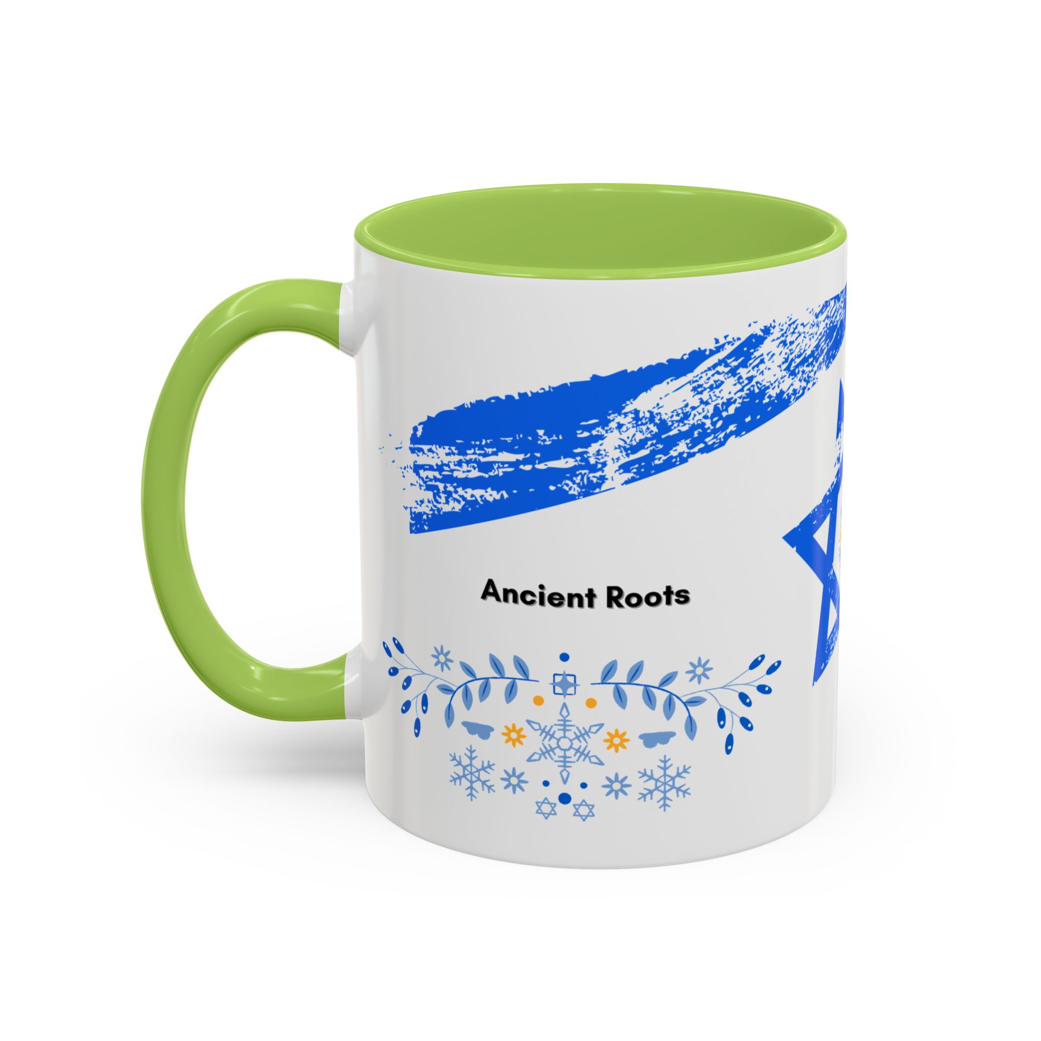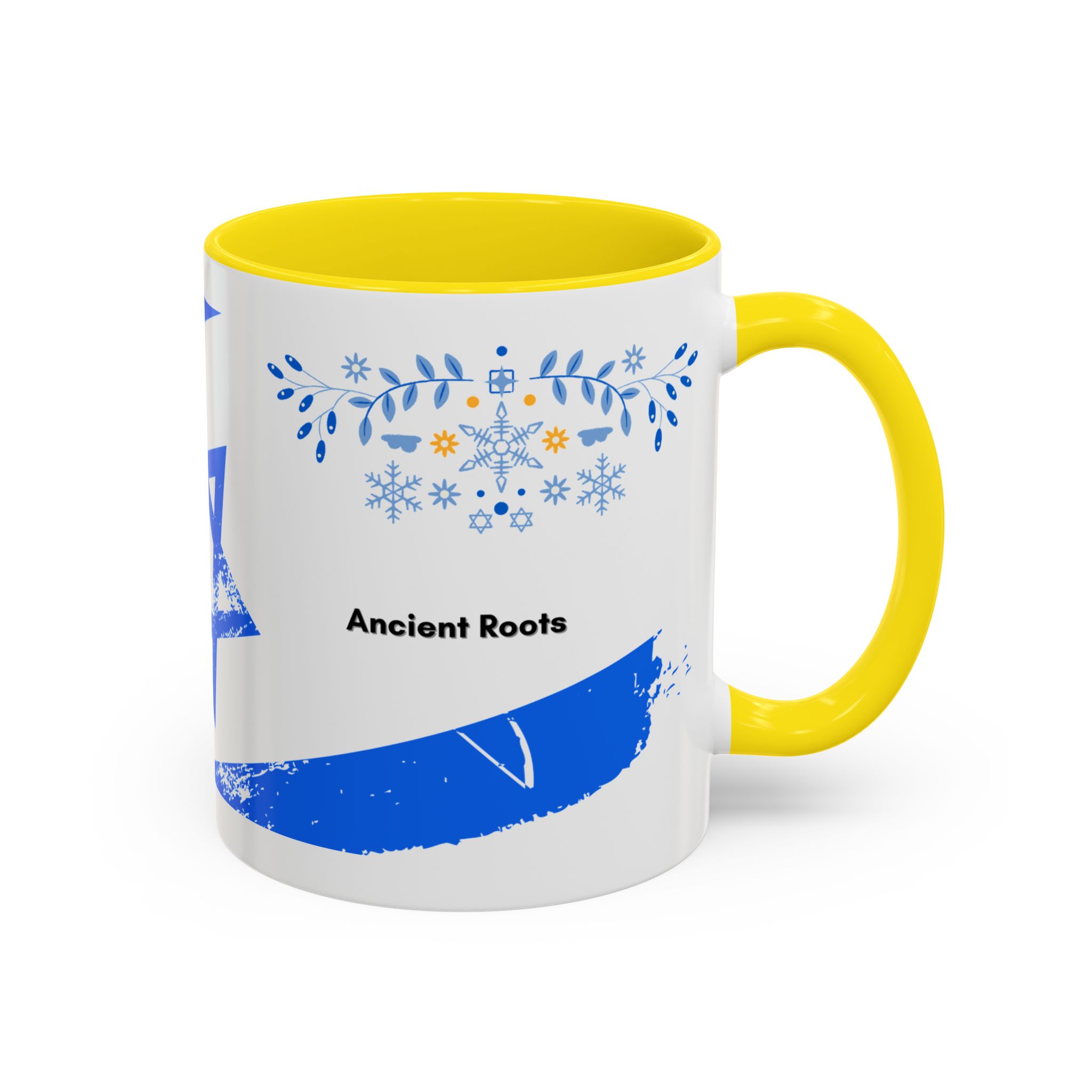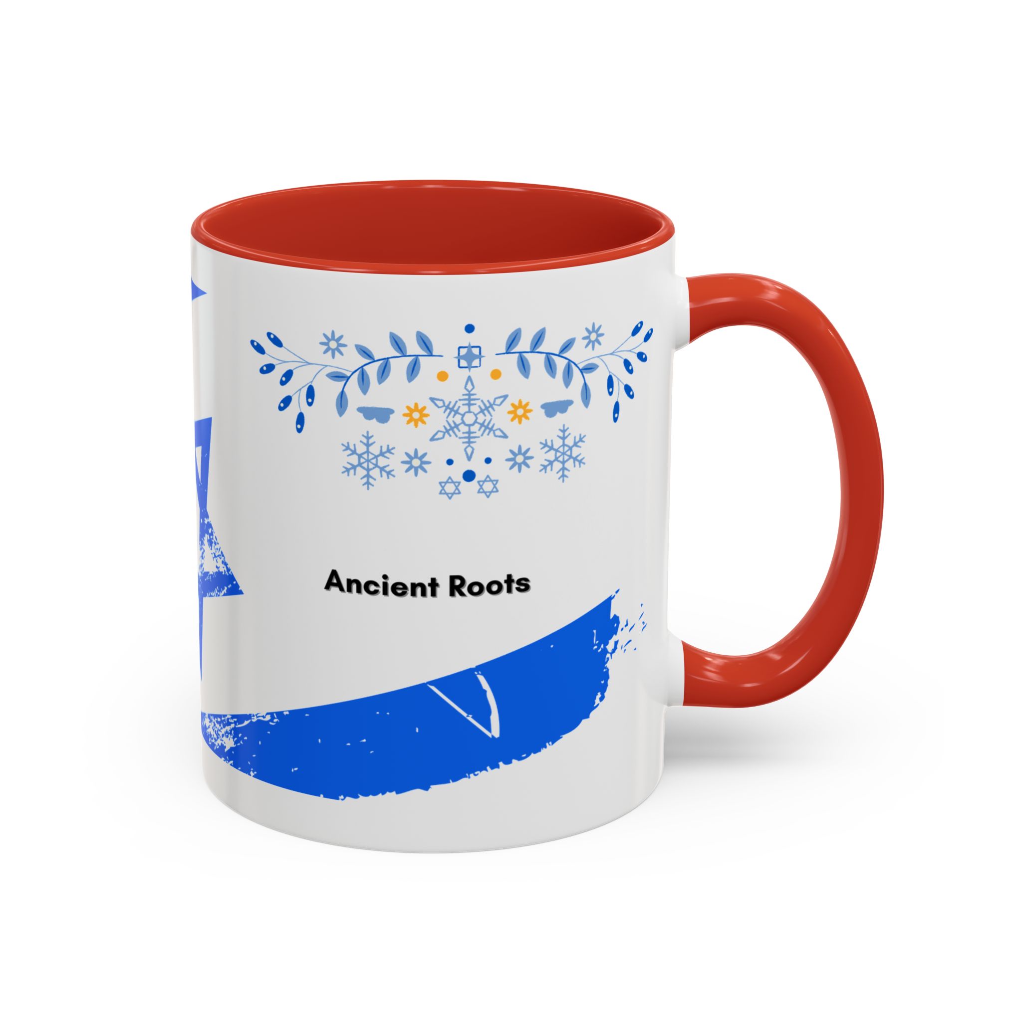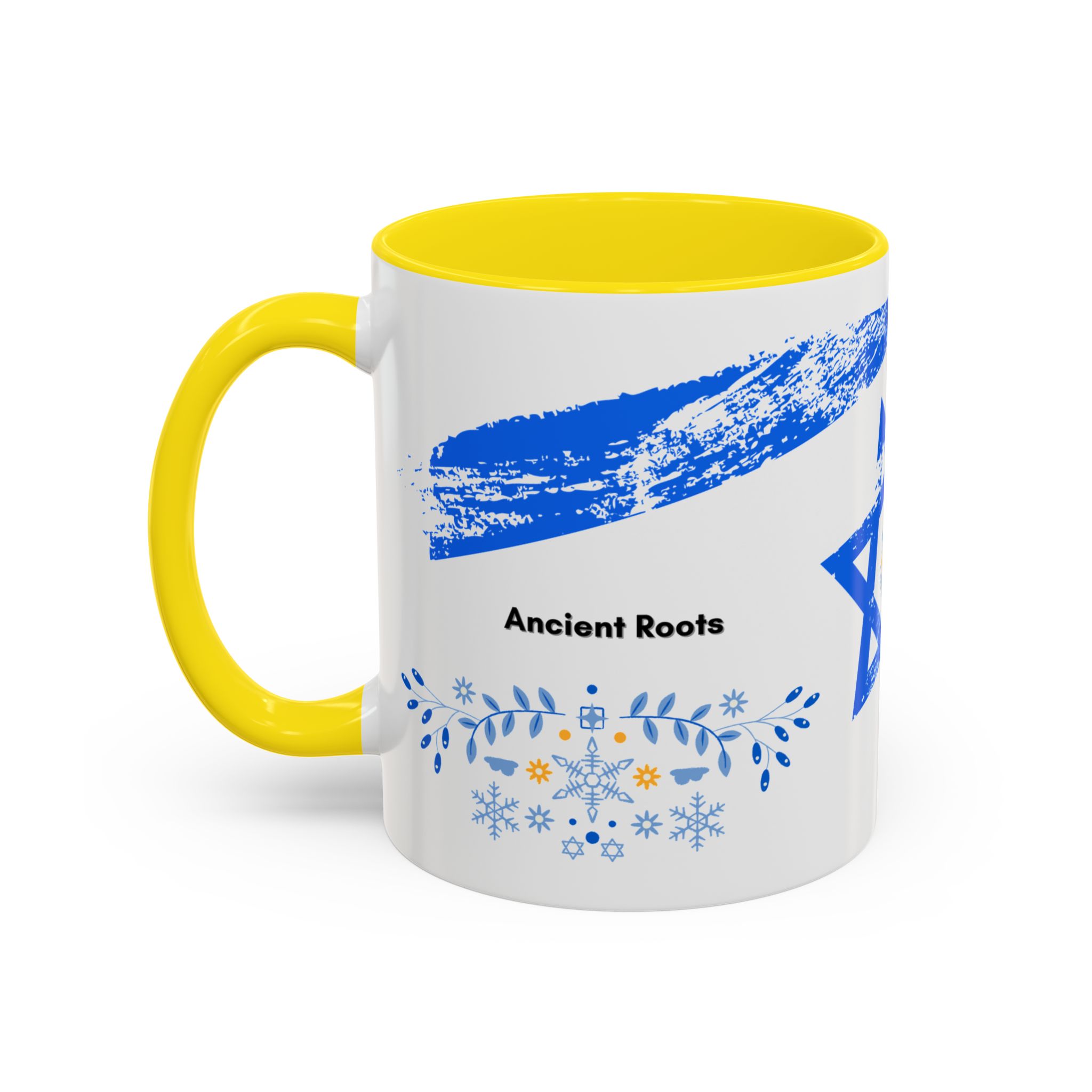 Start your day with a quiet touch of tradition. This ceramic accent mug features a distressed blue Star of David with soft folk-floral details. The glossy white exterior and bold colored interior and handle make the design stand out. Comfortable to hold and perfect for daily coffee or tea, it’s a meaningful mug for everyday moments and holiday mornings.