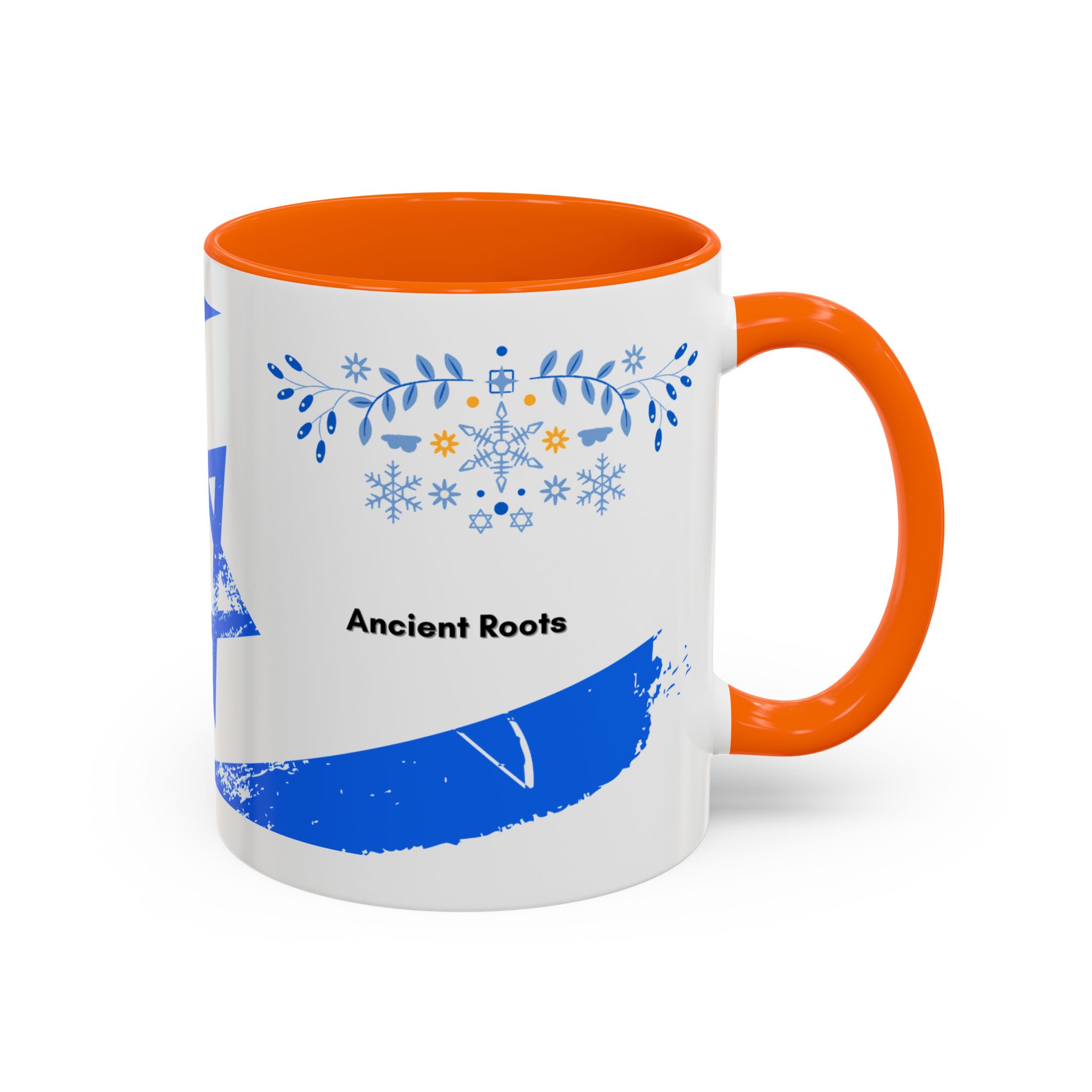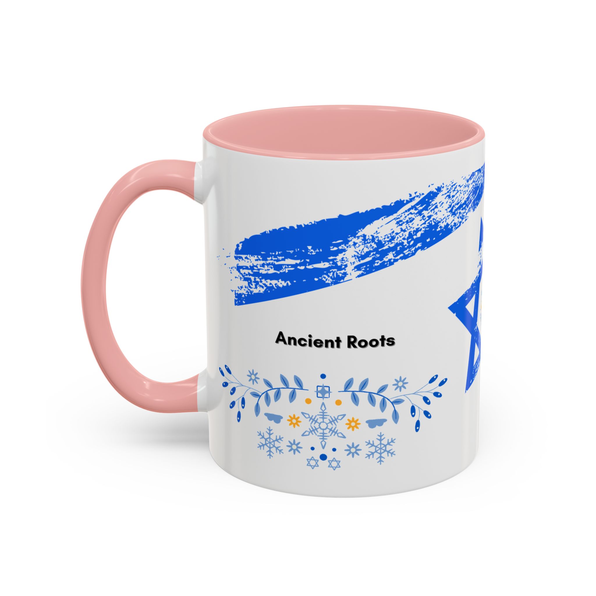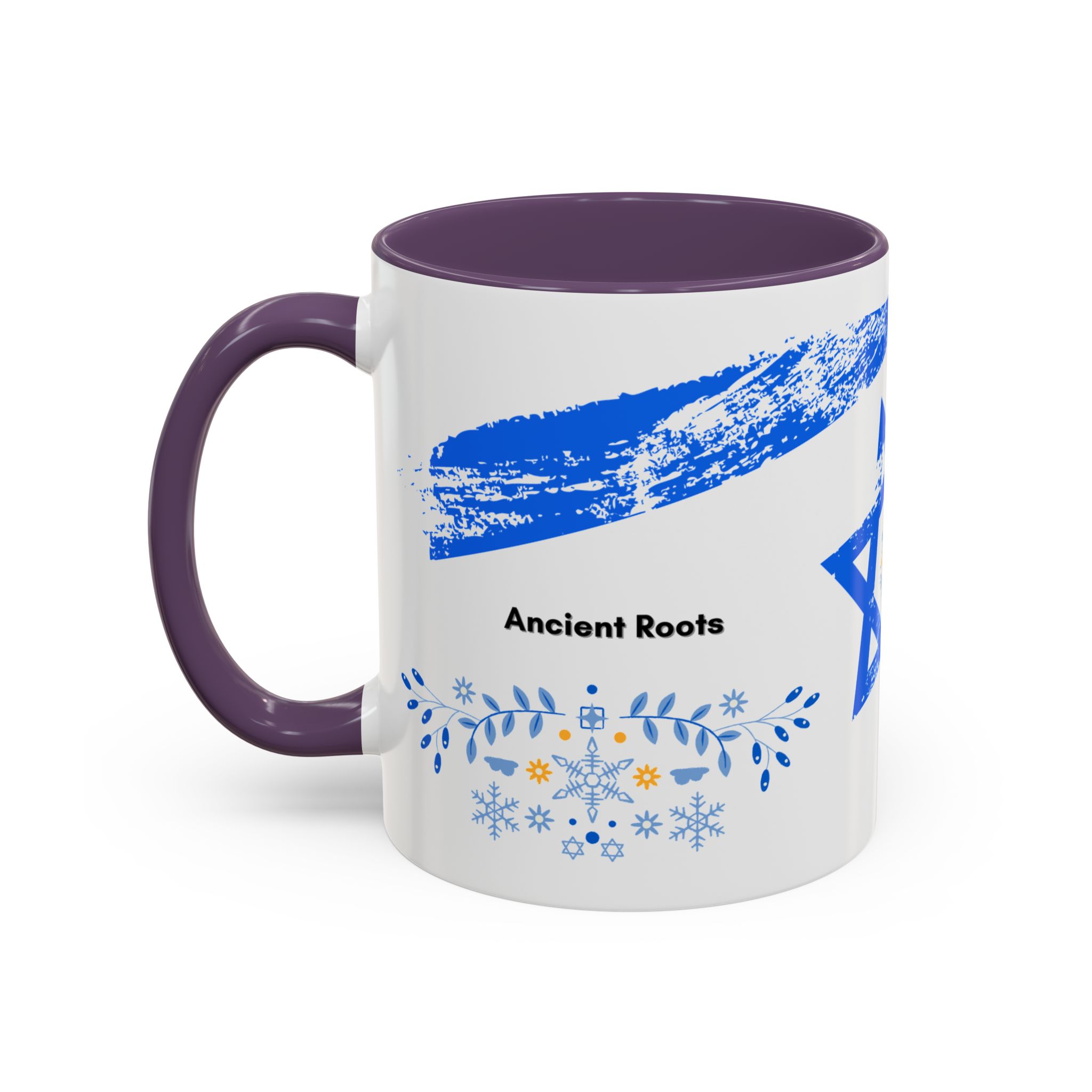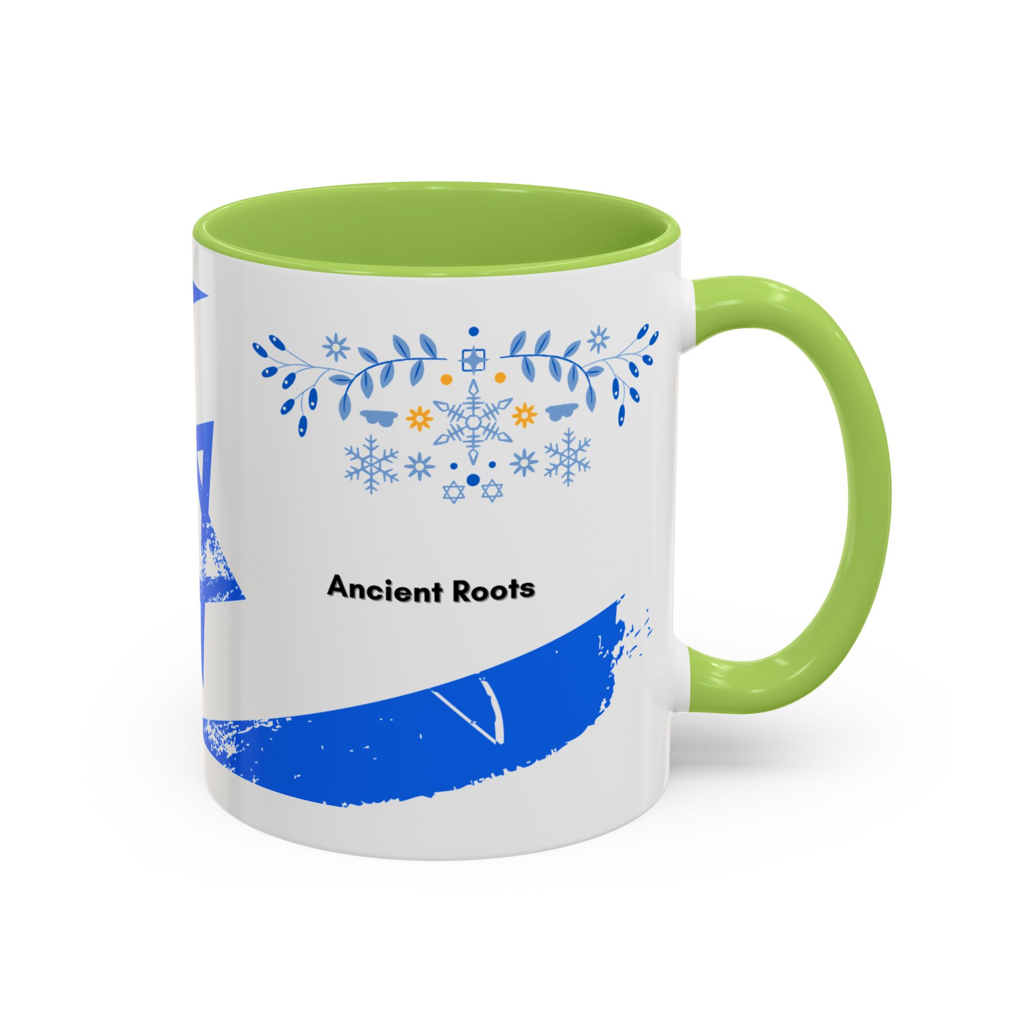 Start your day with a quiet touch of tradition. This ceramic accent mug features a distressed blue Star of David with soft folk-floral details. The glossy white exterior and bold colored interior and handle make the design stand out. Comfortable to hold and perfect for daily coffee or tea, it’s a meaningful mug for everyday moments and holiday mornings.