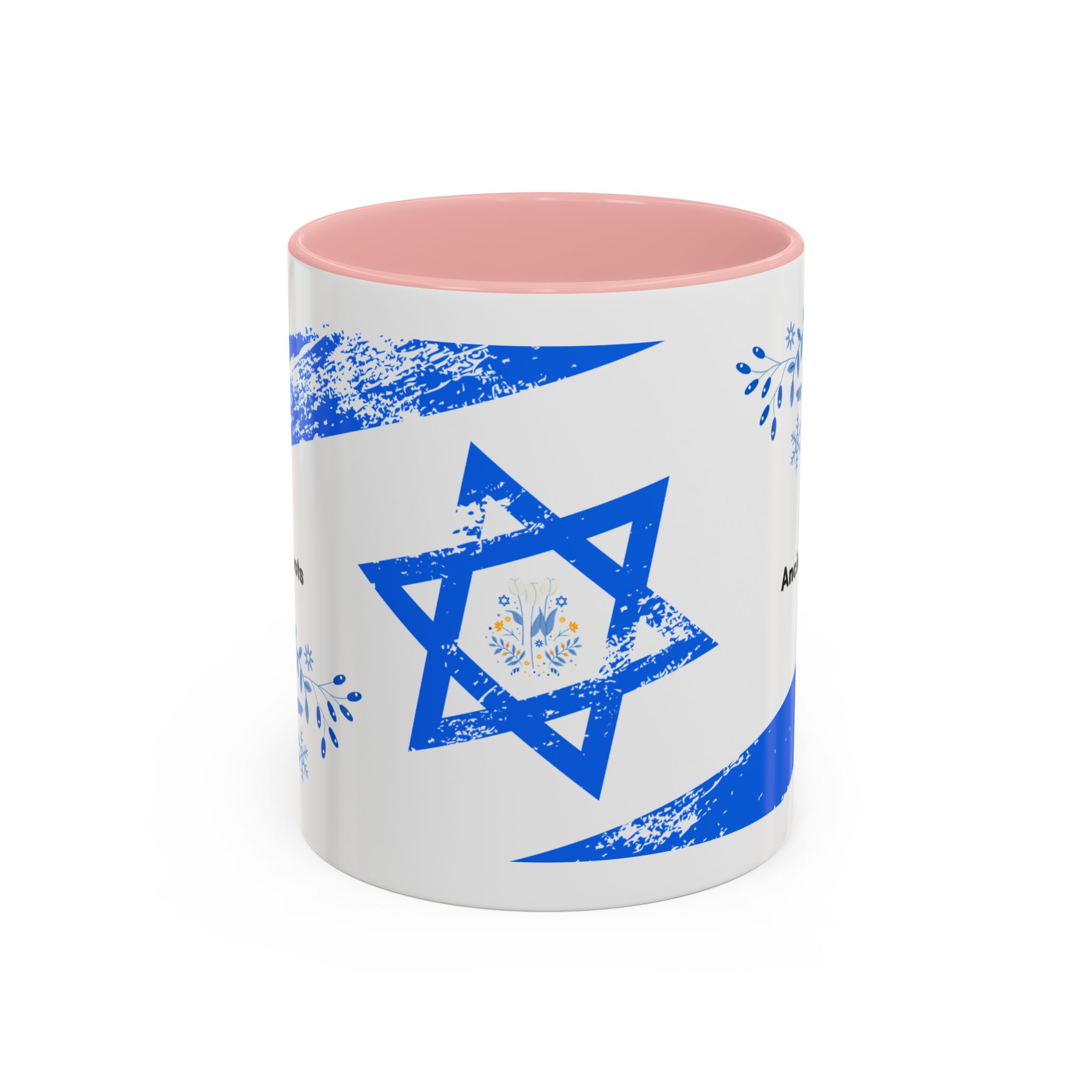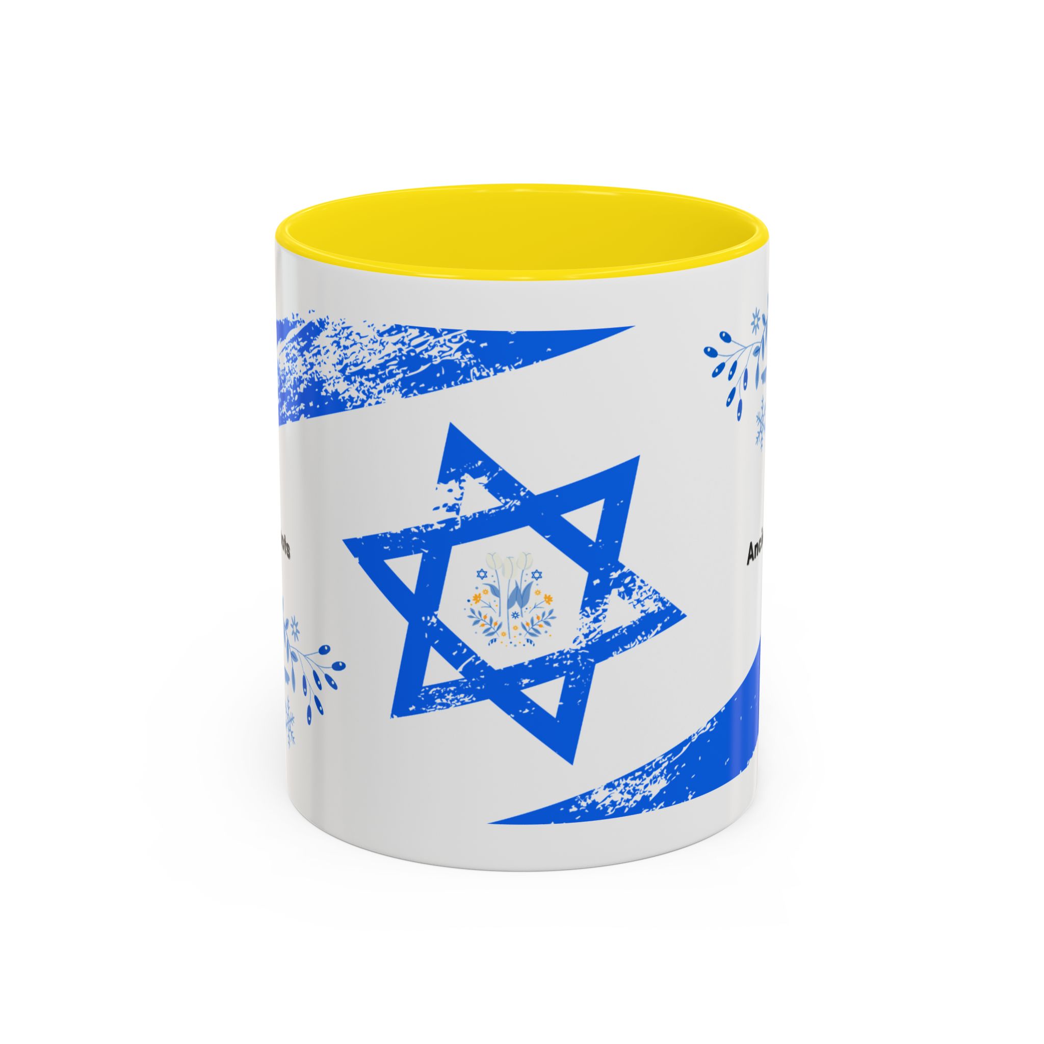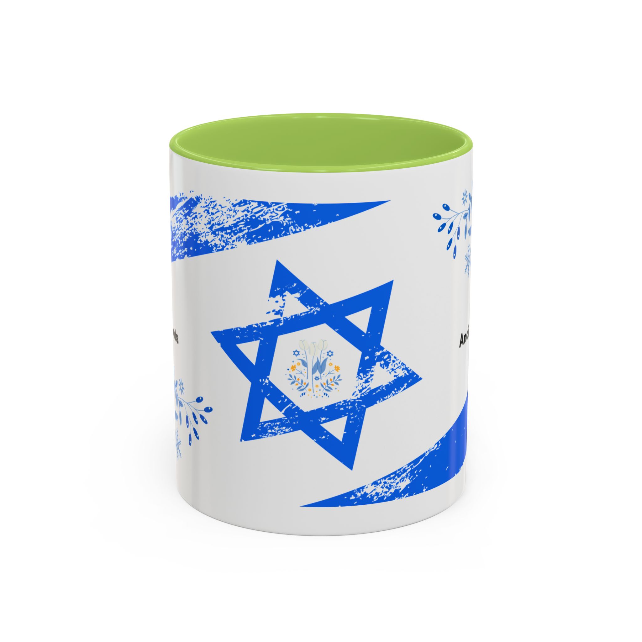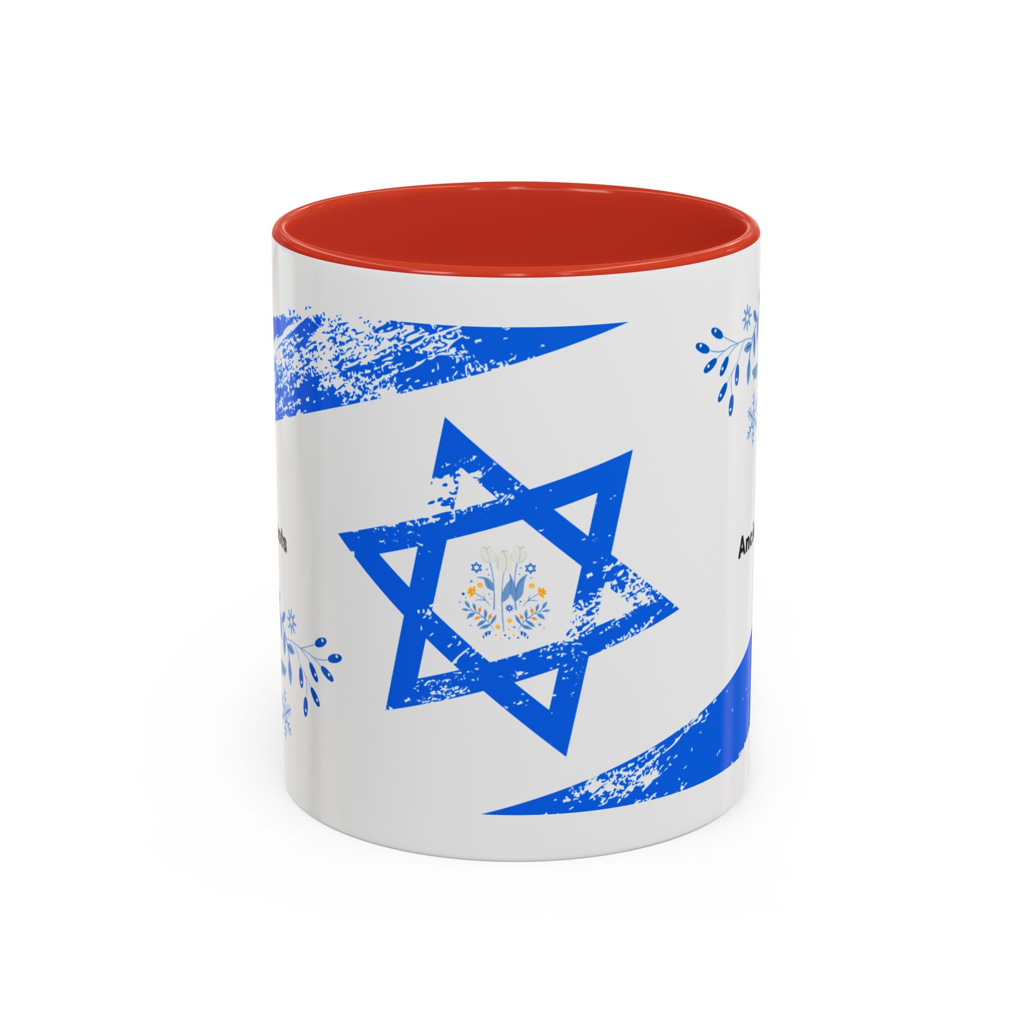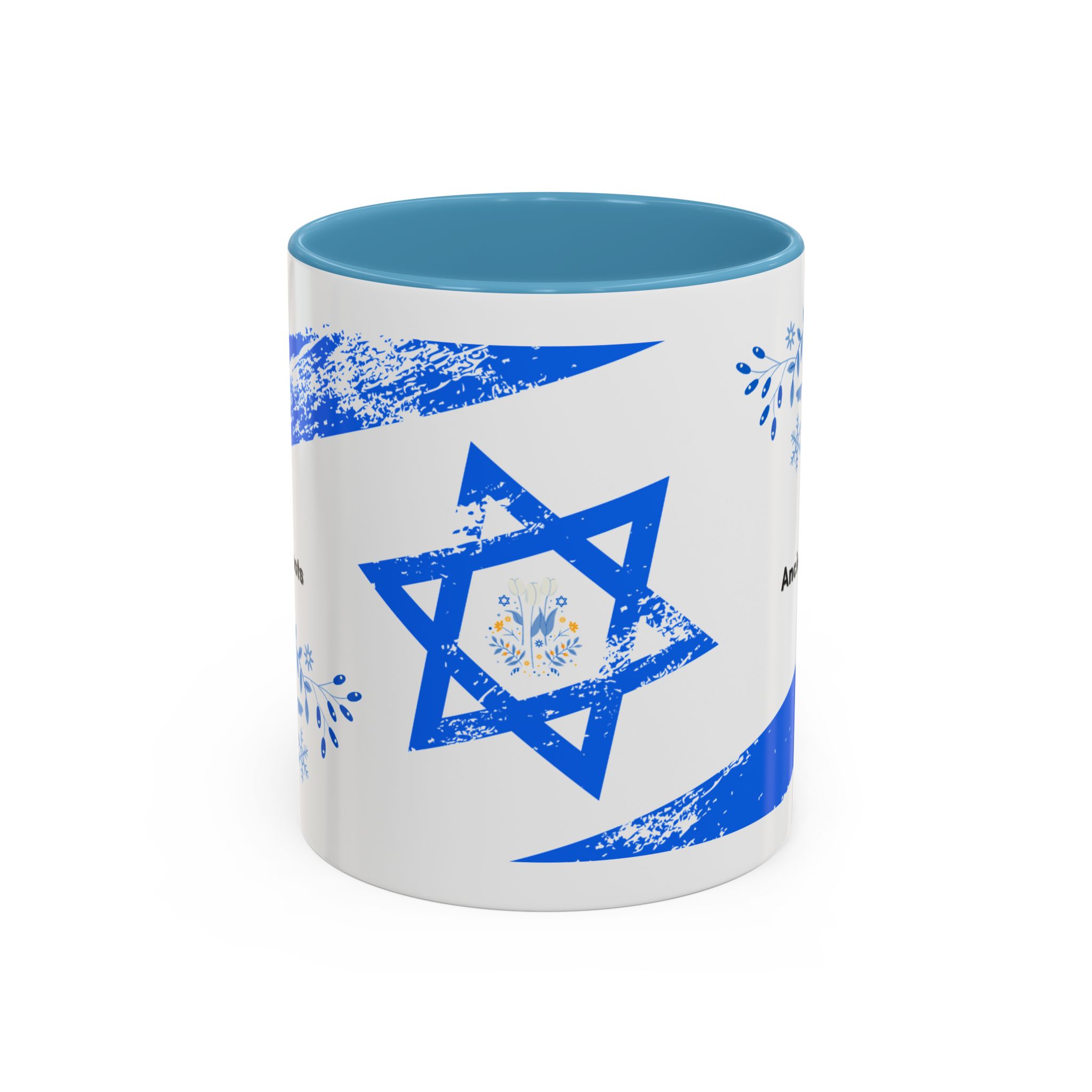 Start your day with a quiet touch of tradition. This ceramic accent mug features a distressed blue Star of David with soft folk-floral details. The glossy white exterior and bold colored interior and handle make the design stand out. Comfortable to hold and perfect for daily coffee or tea, it’s a meaningful mug for everyday moments and holiday mornings.