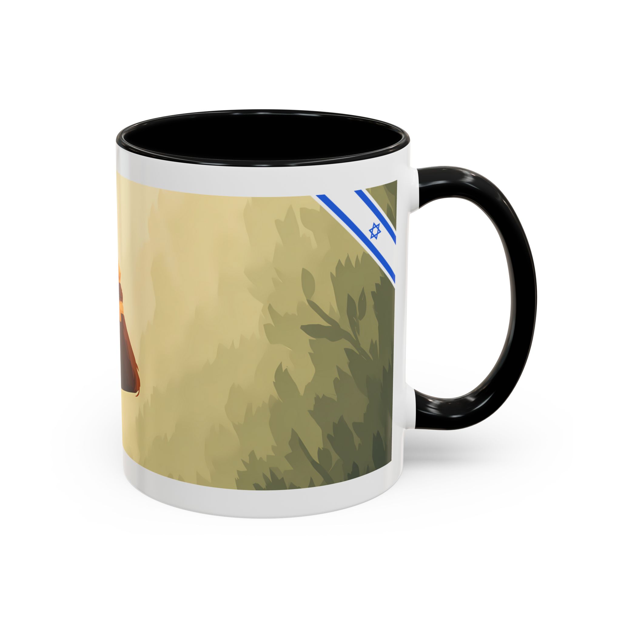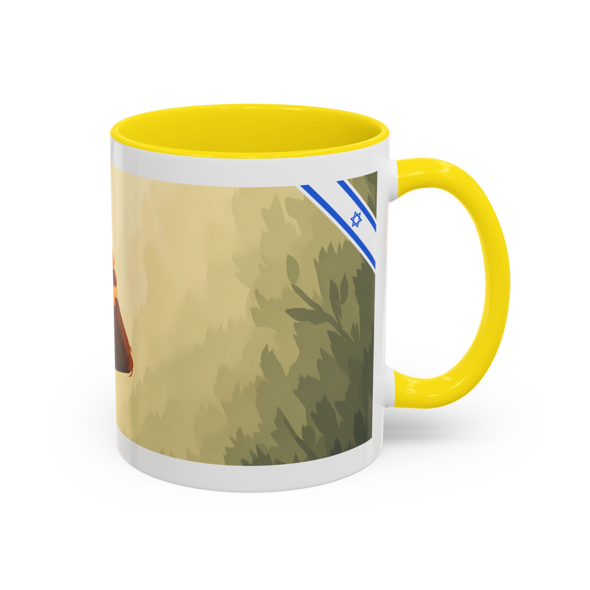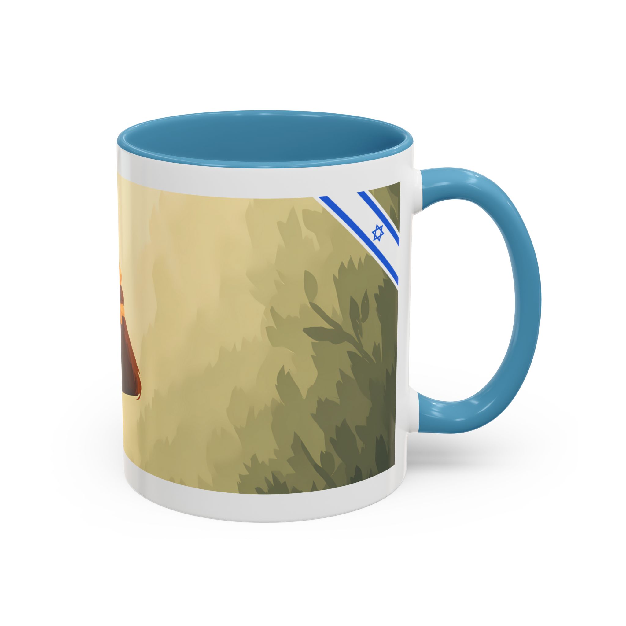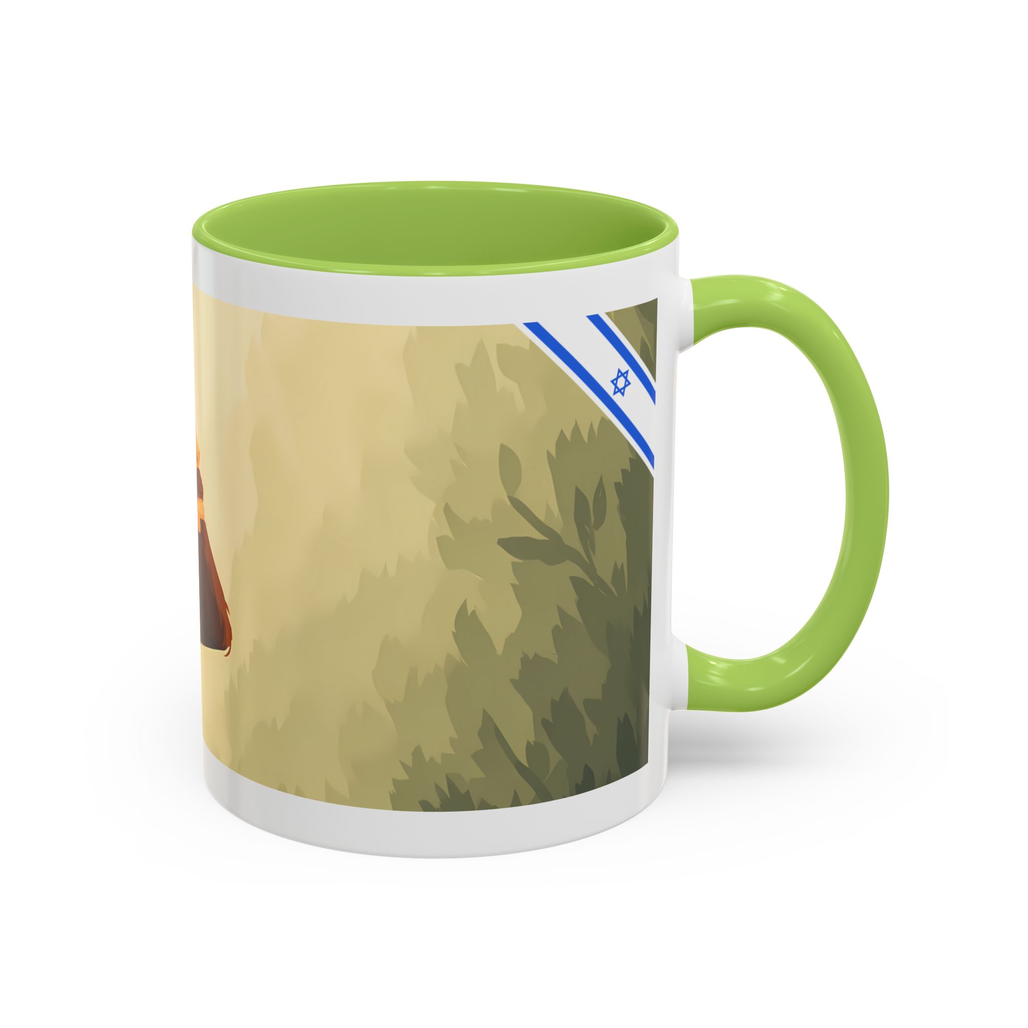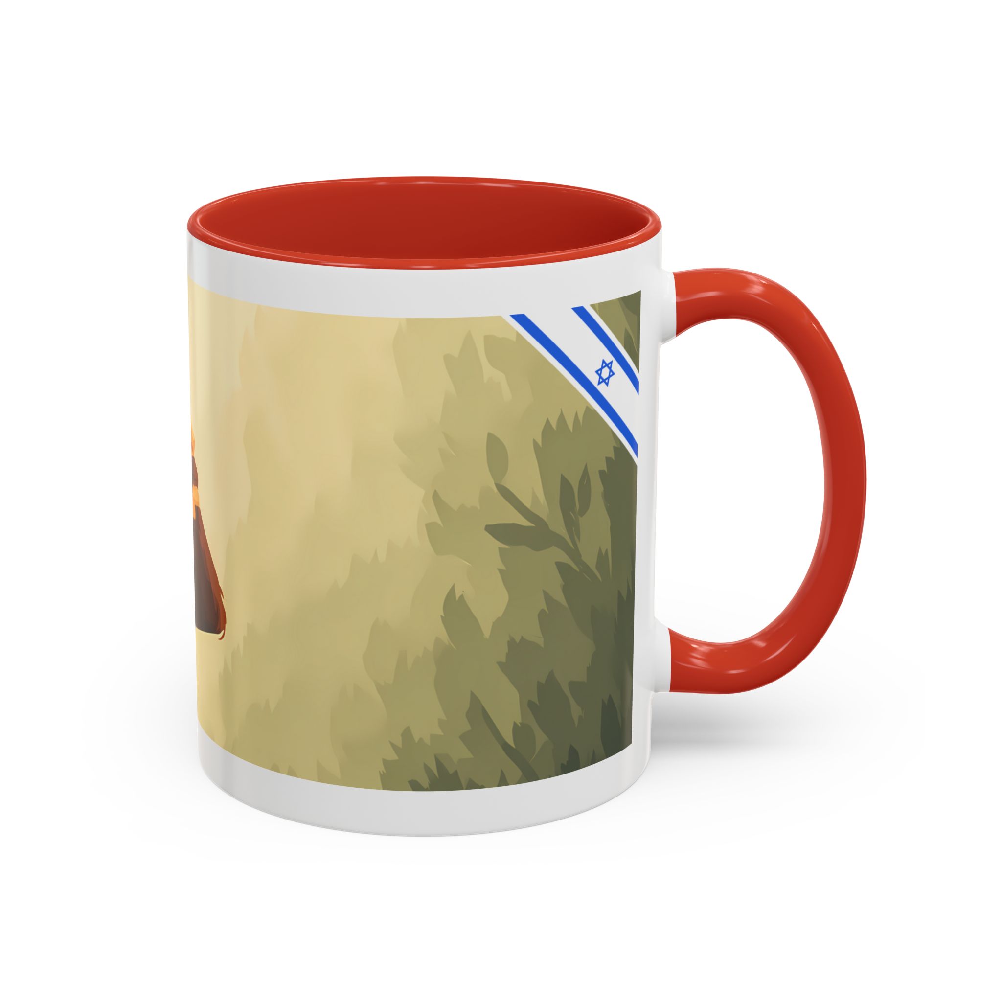 This ceramic accent mug features soft, painterly artwork with warm tones, gentle foliage, and a thoughtful upward-looking figure that invites quiet reflection. The glossy white exterior is paired with a bold color-contrast handle and interior, making the design stand out while remaining calm and understated. Comfortable to hold with a C-shaped handle and built for daily use, this mug is microwave- and dishwasher-safe—perfect for coffee or tea during peaceful mornings, focused work breaks, or slow afternoons.