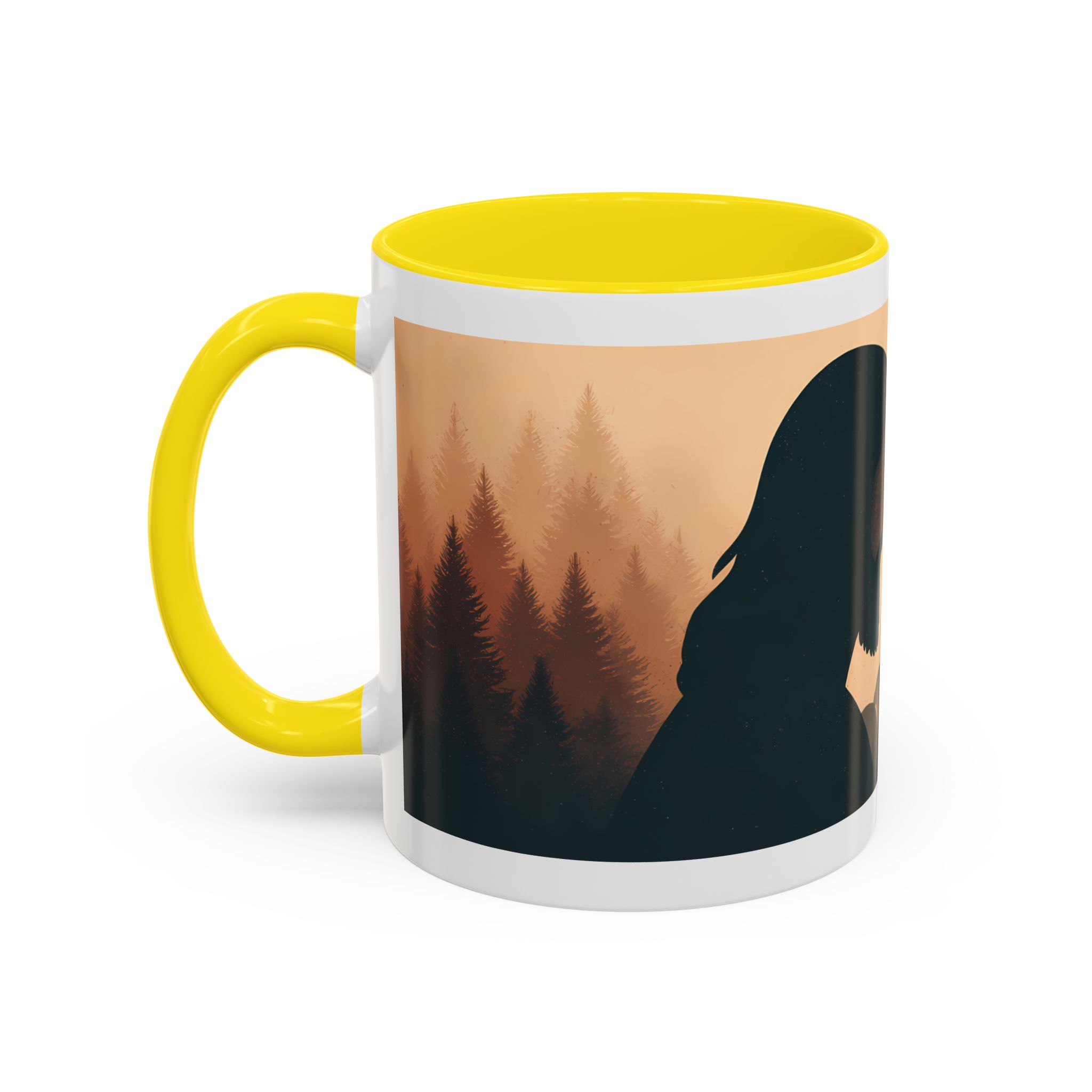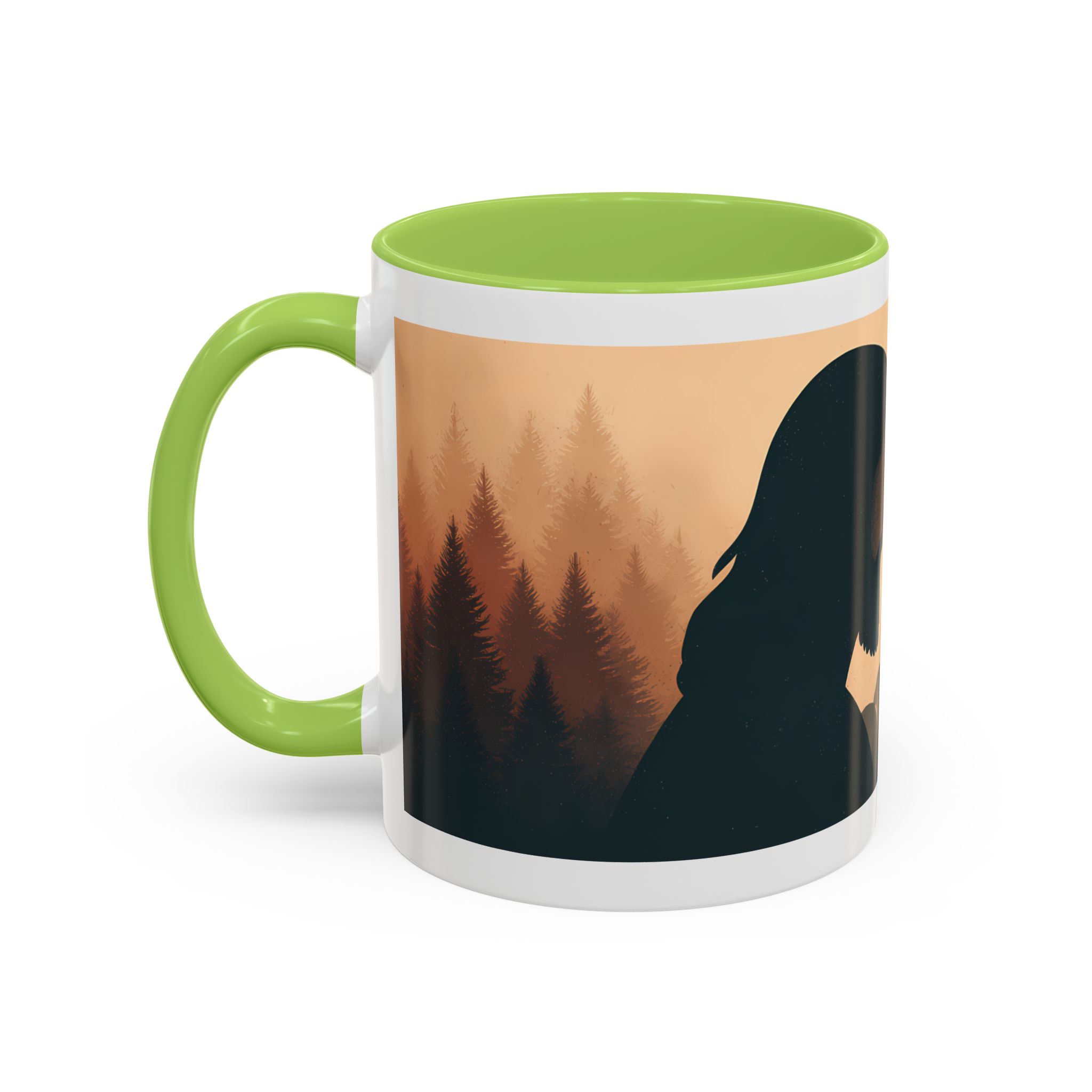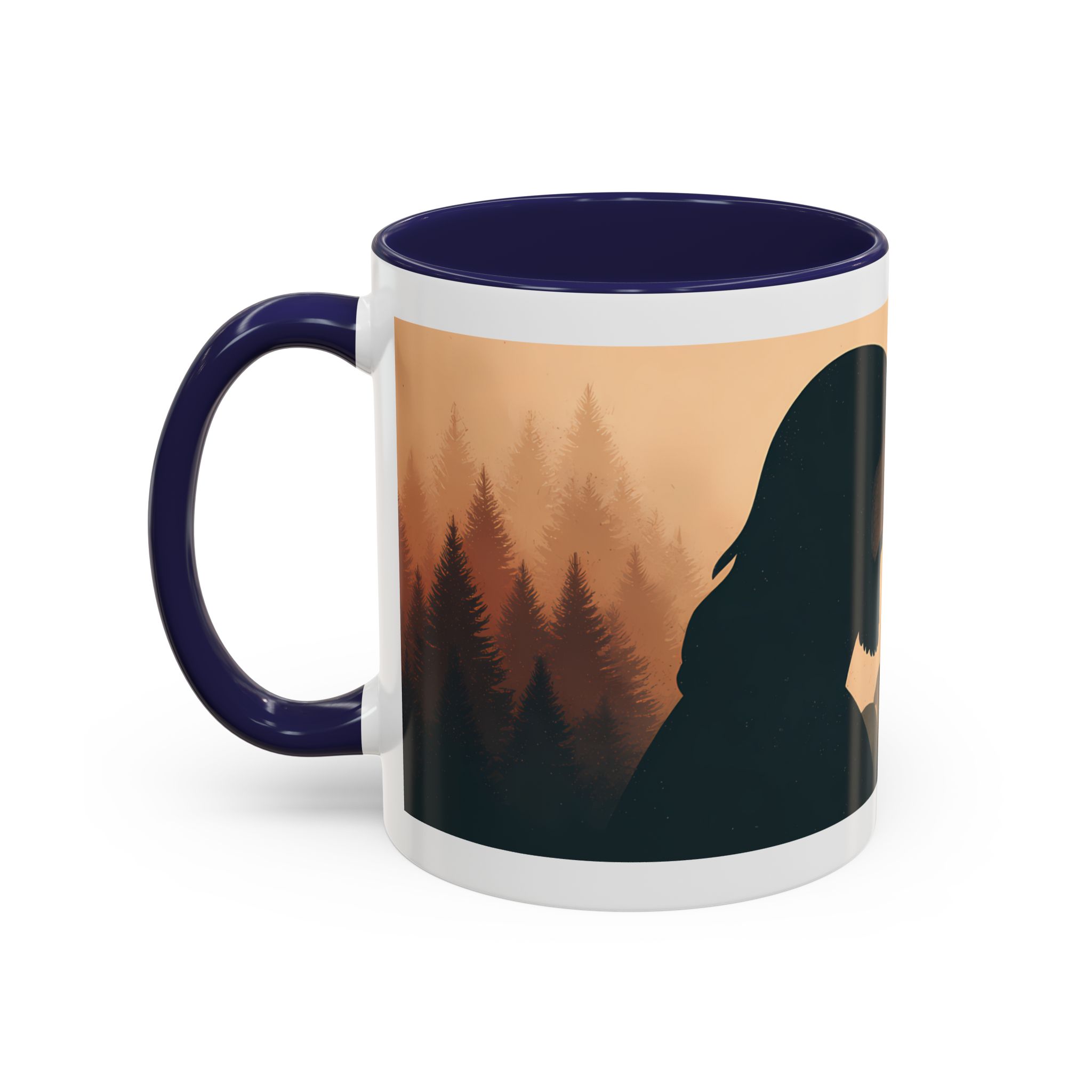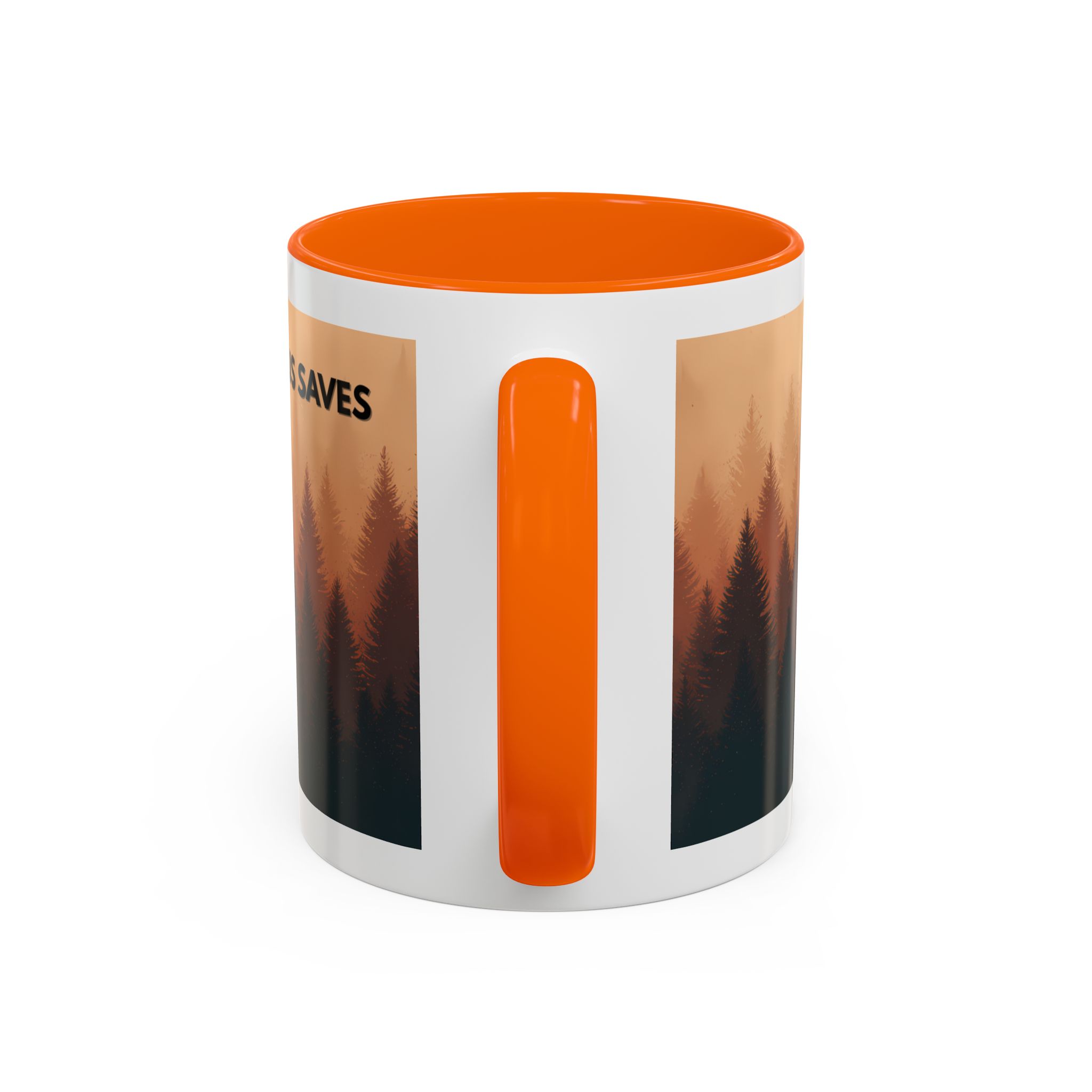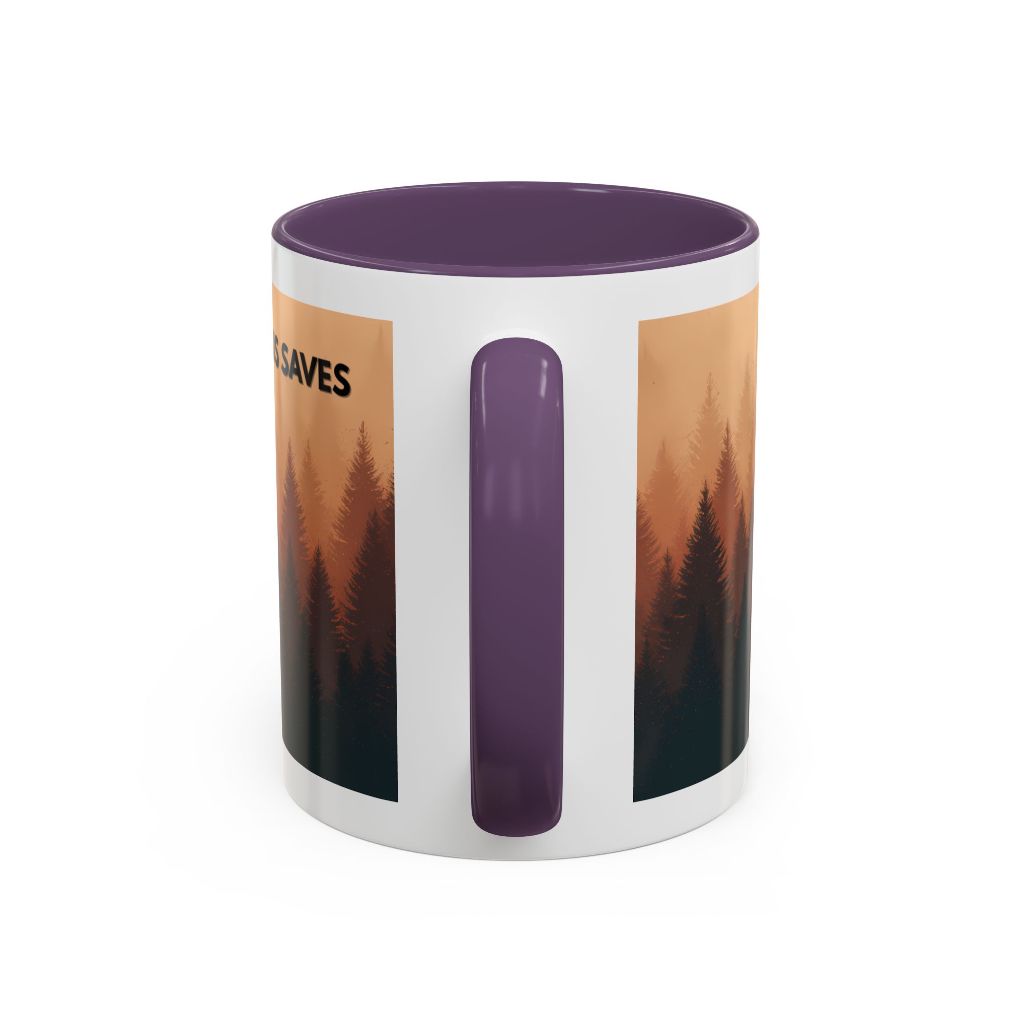 This ceramic accent coffee mug features a peaceful forest scene in soft, warm tones with a silhouetted figure and the message “Jesus Saves.” The artwork offers a calm reminder of faith, while the glossy white exterior is paired with a colored interior and handle for a striking contrast. Available in 11 oz and 15 oz sizes, this durable mug is microwave- and dishwasher-safe, making it ideal for daily coffee, tea, prayer breaks, or quiet moments of reflection.