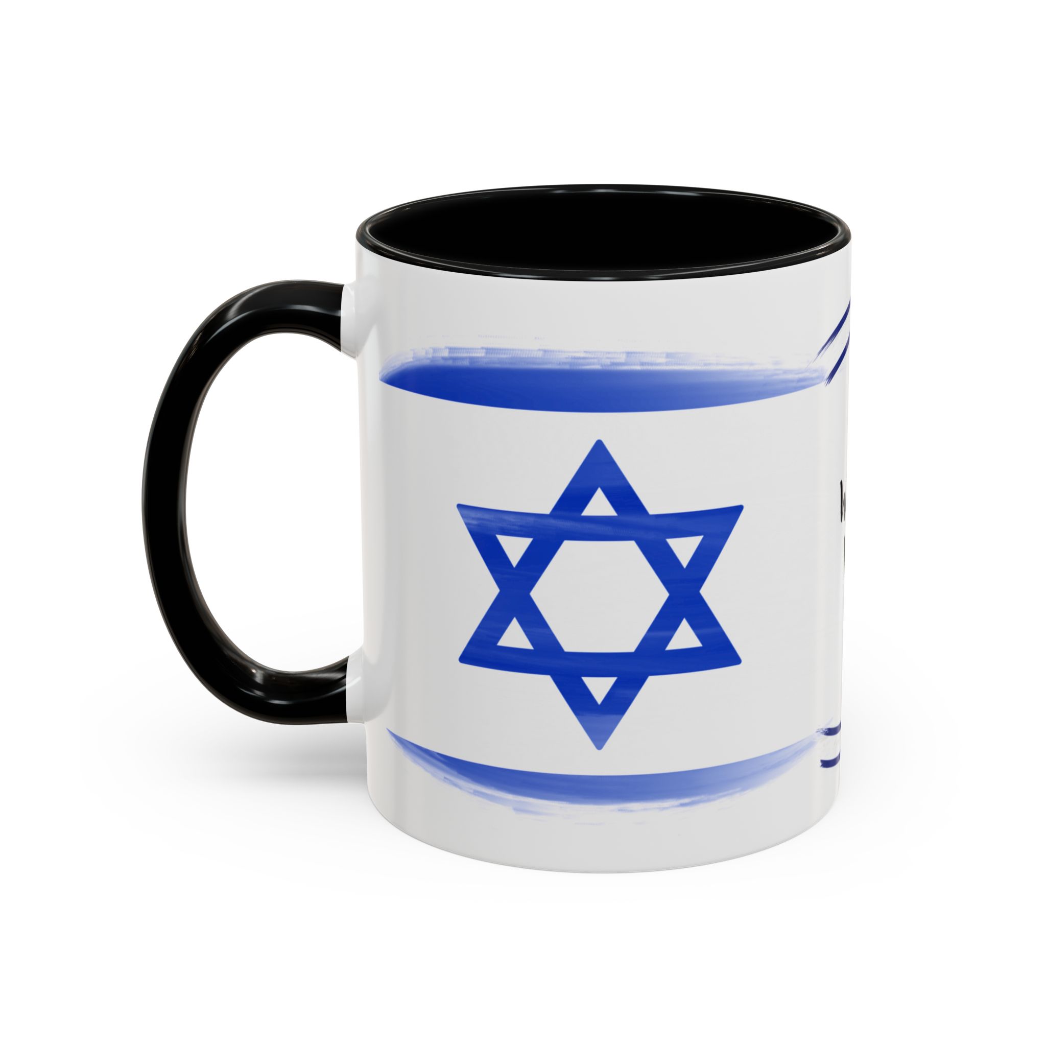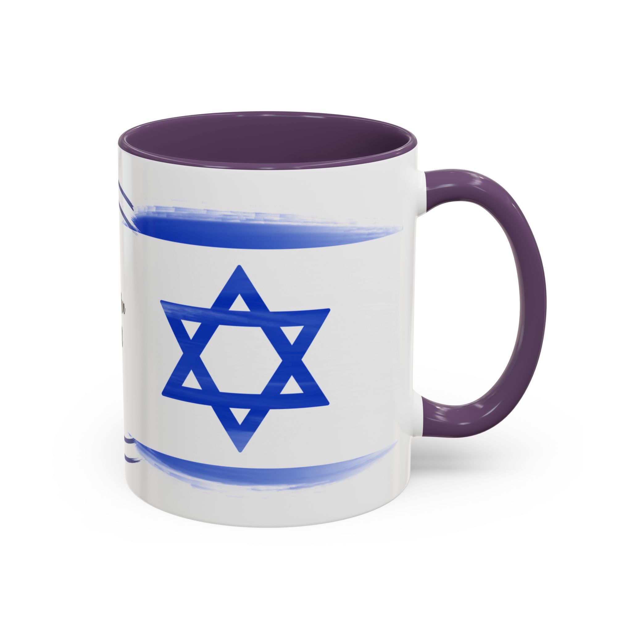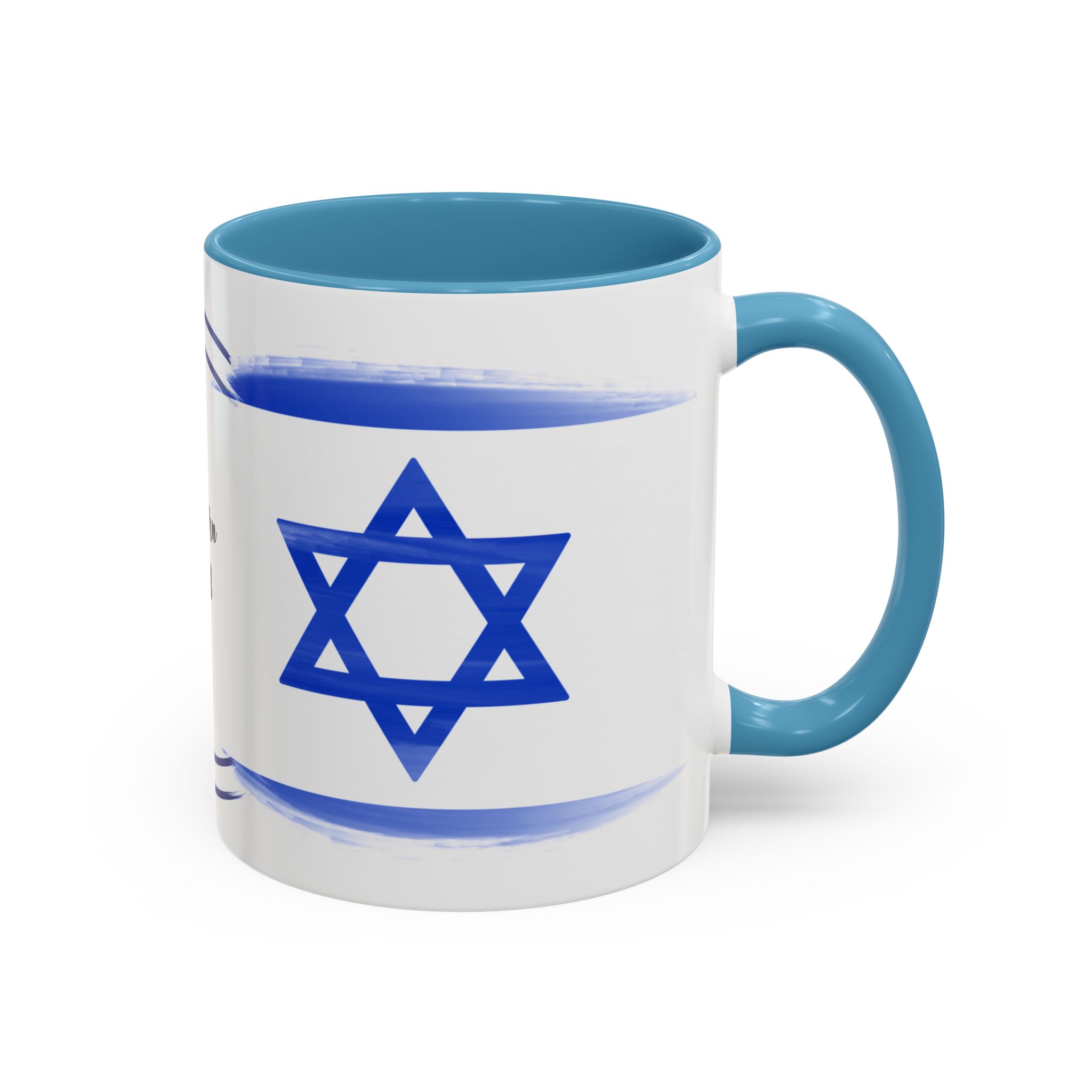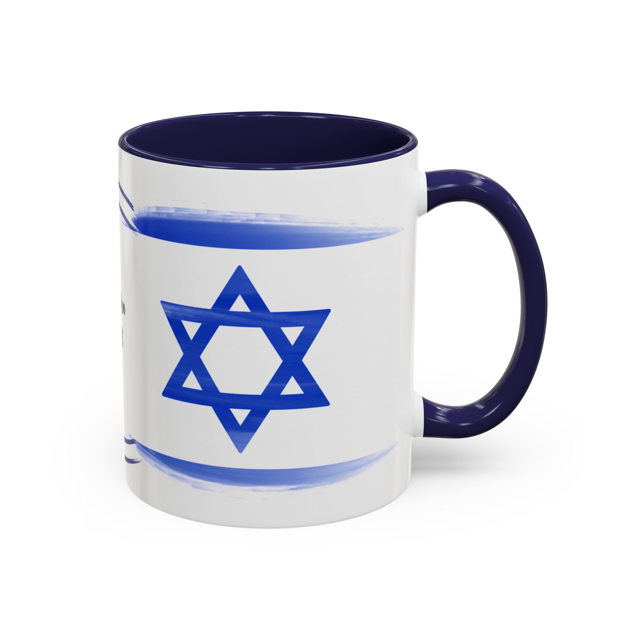 This glossy ceramic accent mug brings quiet reflection and connection to your morning ritual. Featuring a watercolor-inspired blue design with two Stars of David and brushstroke bands echoing the Israeli flag, the center reads “Western Wall” in casual, handwritten script—a subtle nod to pilgrimage, memory, and home. The bold, contrasting interior and handle highlight the vibrant artwork, while the comfortable C-shaped handle ensures everyday ease. Perfect for slow mornings, study sessions, or a display alongside keepsakes and travel mementos.
