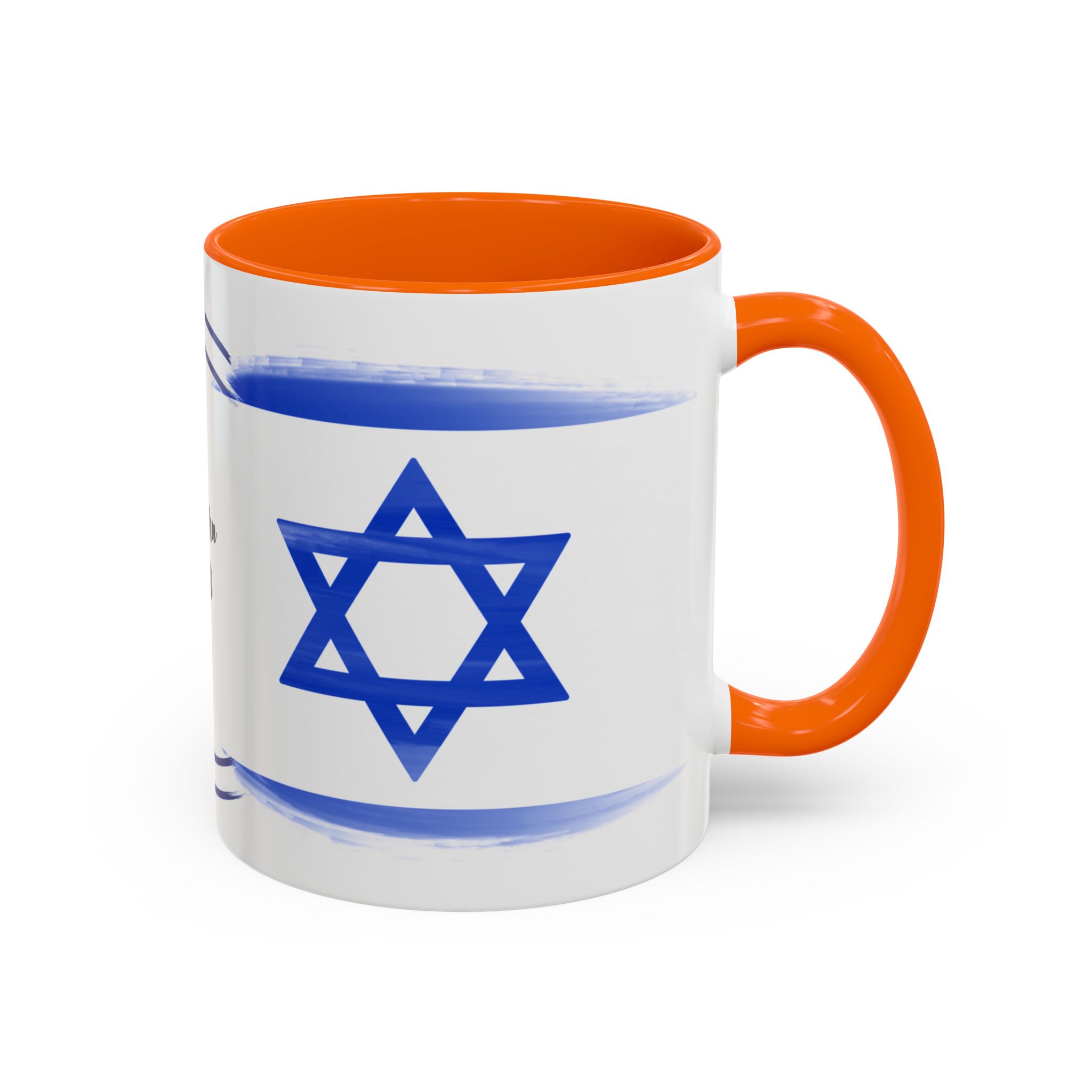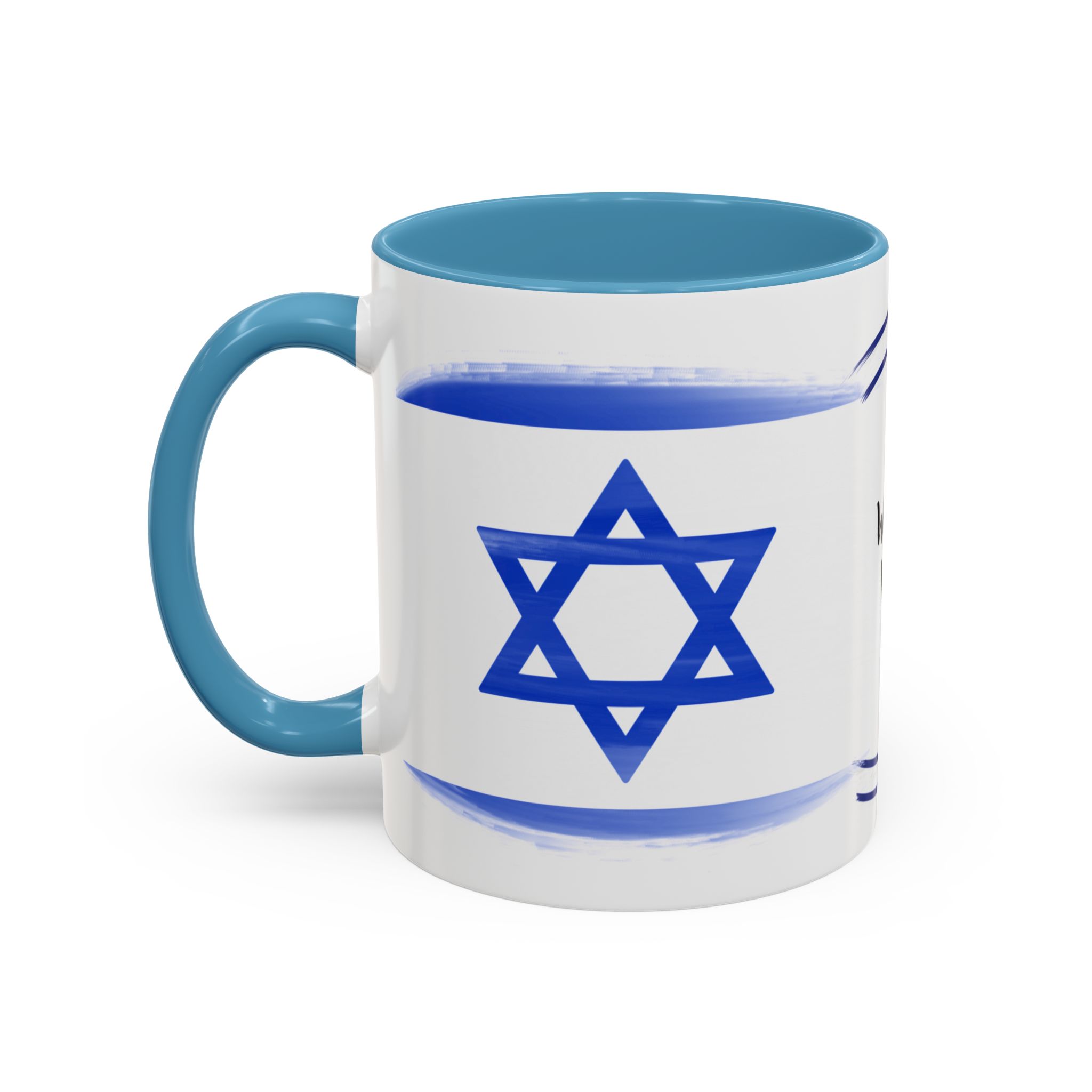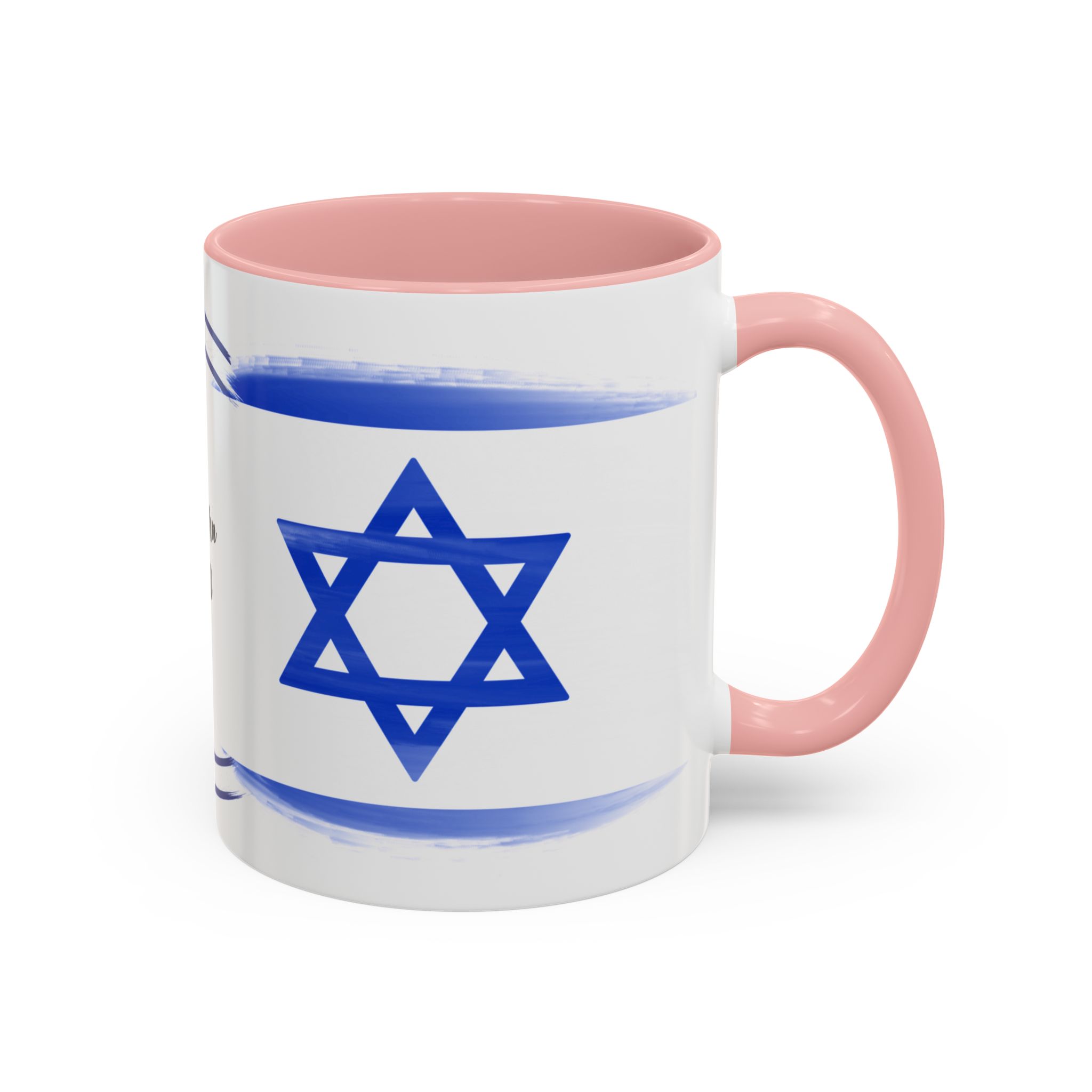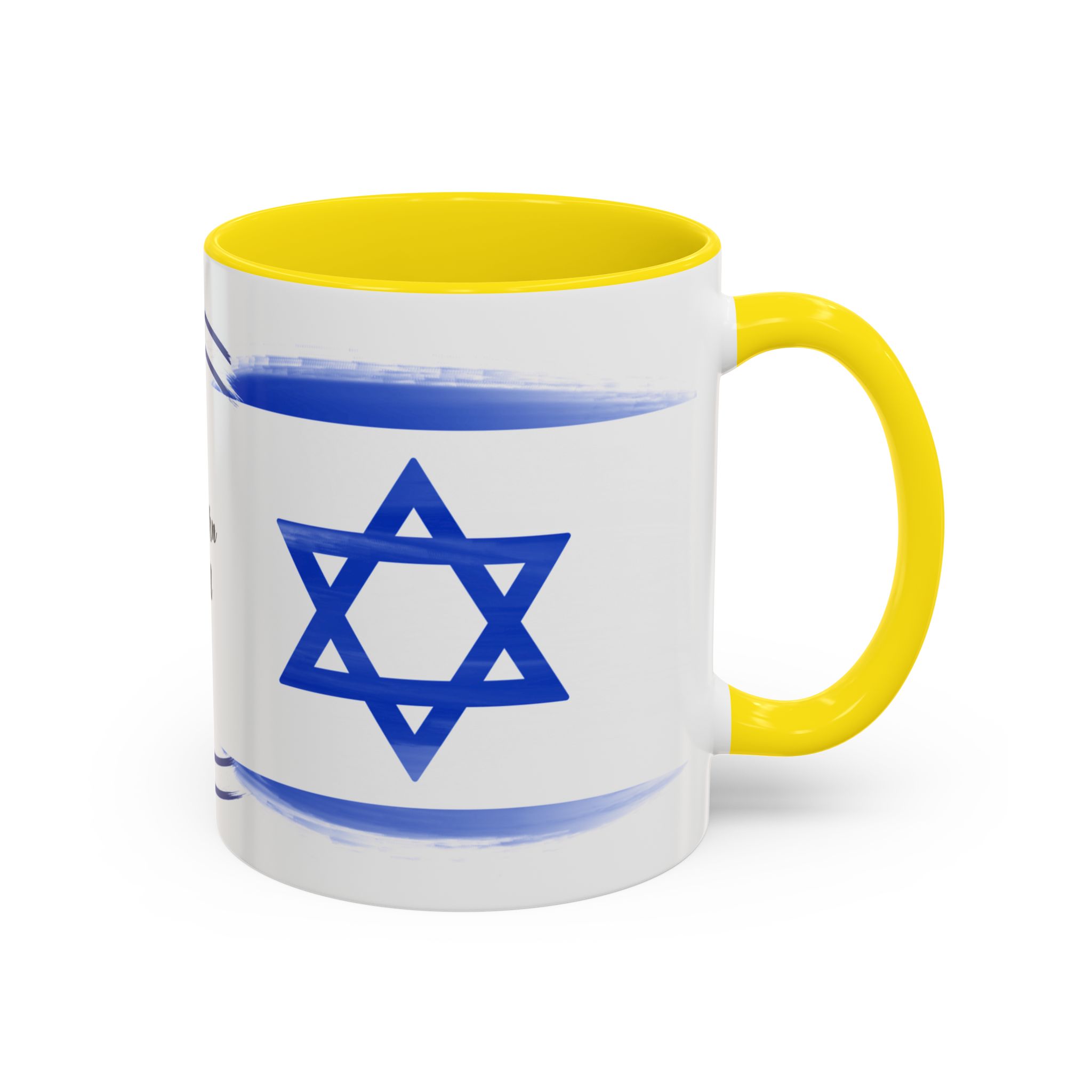 This glossy ceramic accent mug brings quiet reflection and connection to your morning ritual. Featuring a watercolor-inspired blue design with two Stars of David and brushstroke bands echoing the Israeli flag, the center reads “Western Wall” in casual, handwritten script—a subtle nod to pilgrimage, memory, and home. The bold, contrasting interior and handle highlight the vibrant artwork, while the comfortable C-shaped handle ensures everyday ease. Perfect for slow mornings, study sessions, or a display alongside keepsakes and travel mementos.