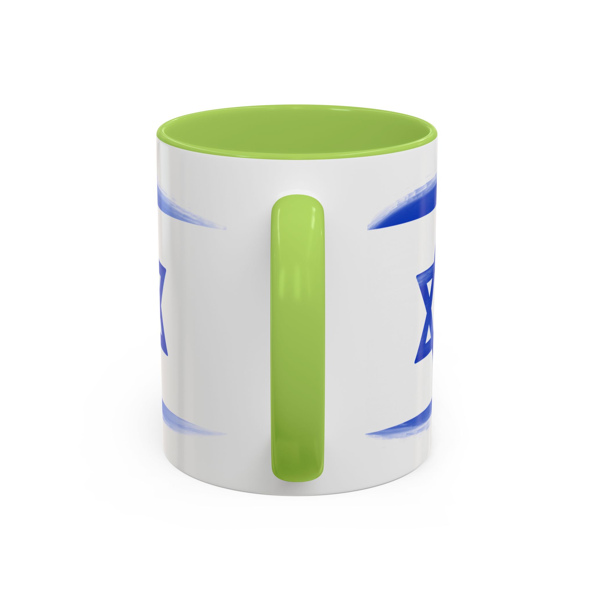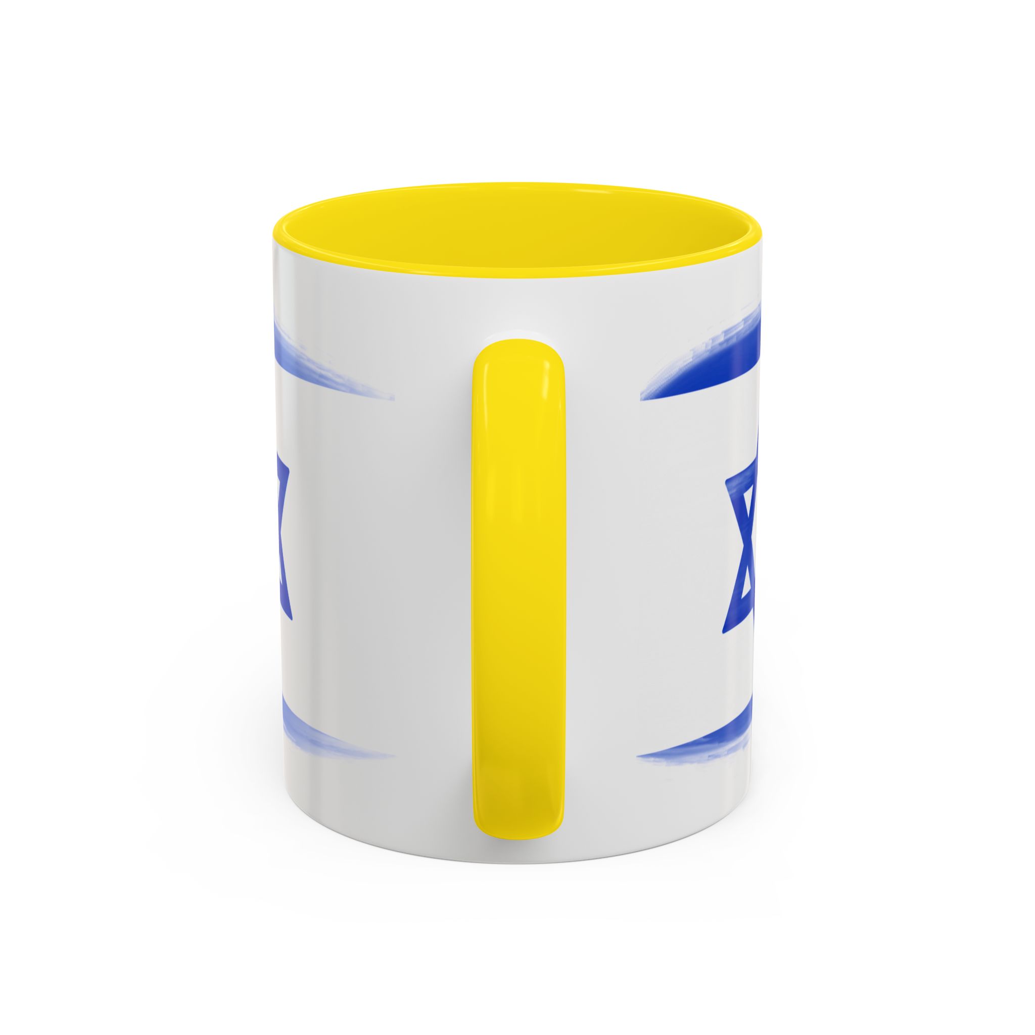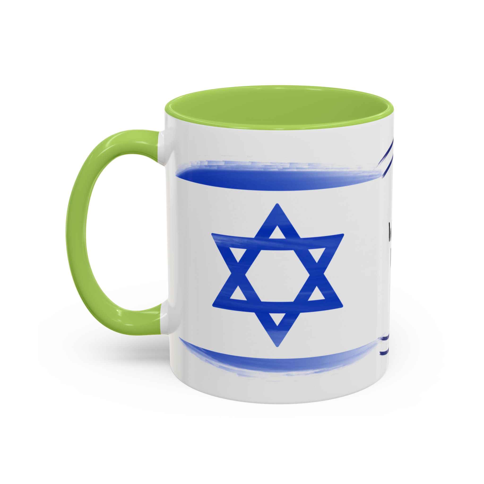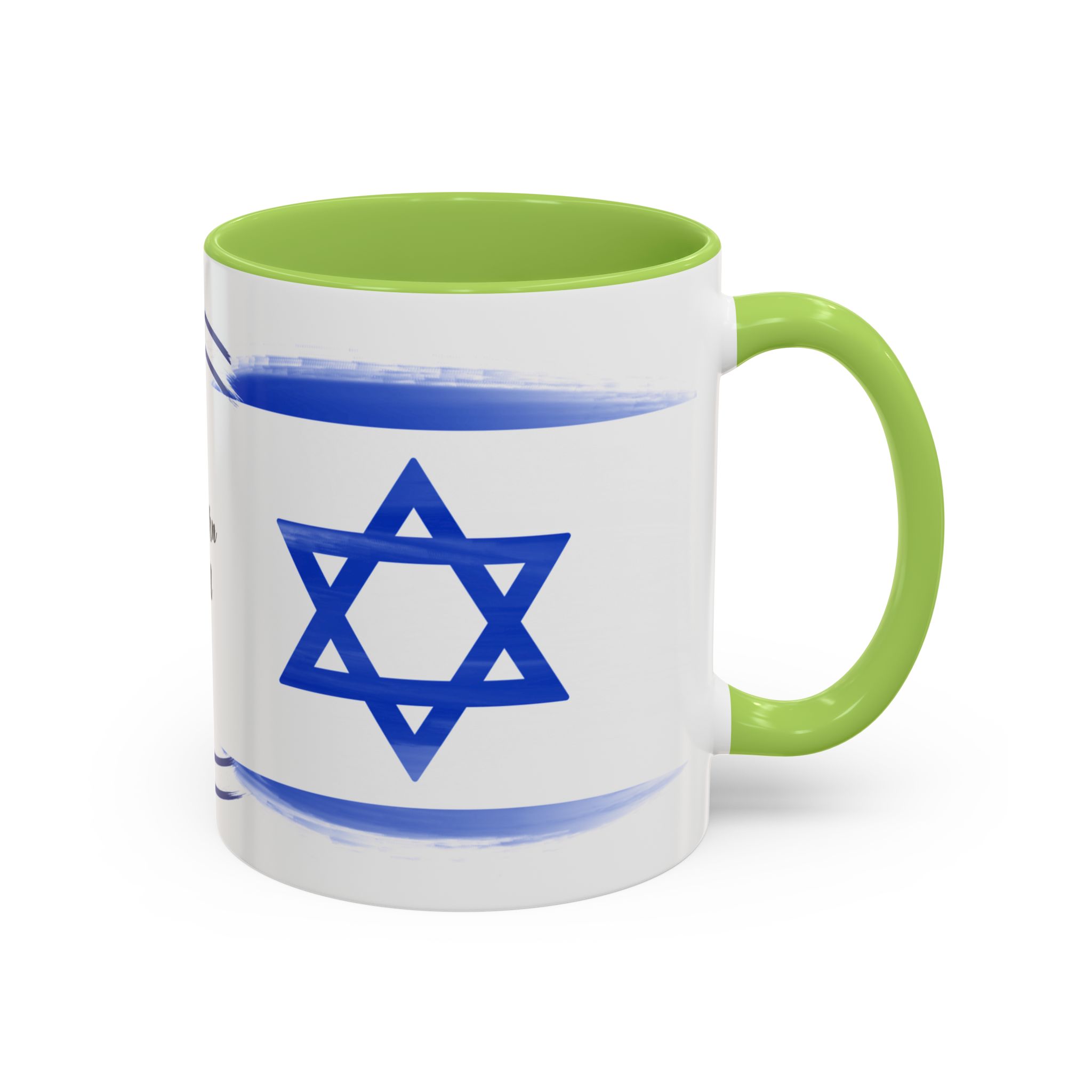 This glossy ceramic accent mug brings quiet reflection and connection to your morning ritual. Featuring a watercolor-inspired blue design with two Stars of David and brushstroke bands echoing the Israeli flag, the center reads “Western Wall” in casual, handwritten script—a subtle nod to pilgrimage, memory, and home. The bold, contrasting interior and handle highlight the vibrant artwork, while the comfortable C-shaped handle ensures everyday ease. Perfect for slow mornings, study sessions, or a display alongside keepsakes and travel mementos.