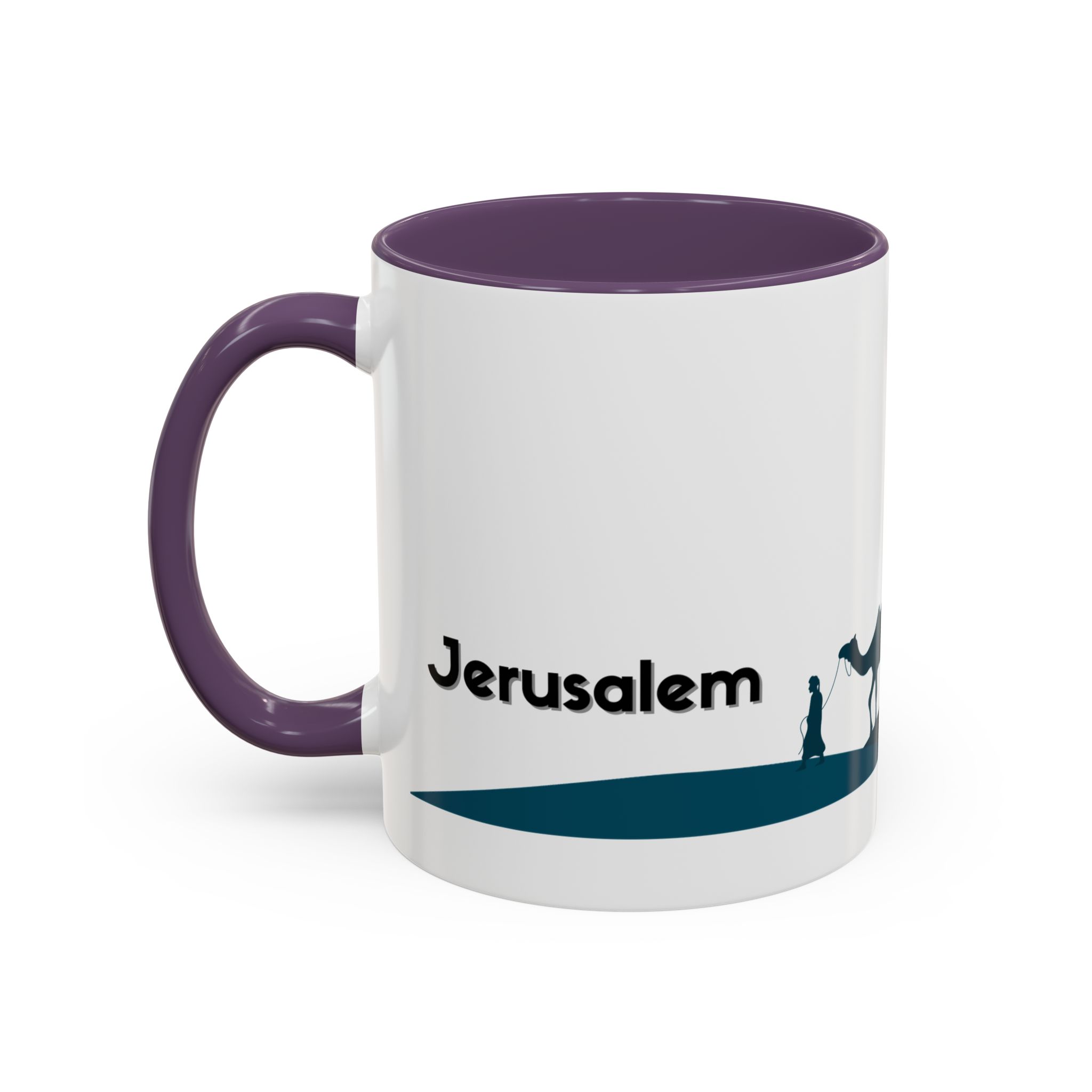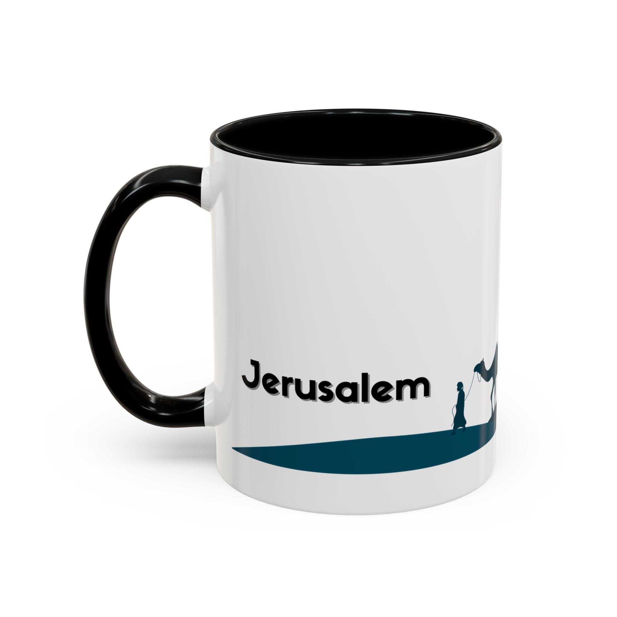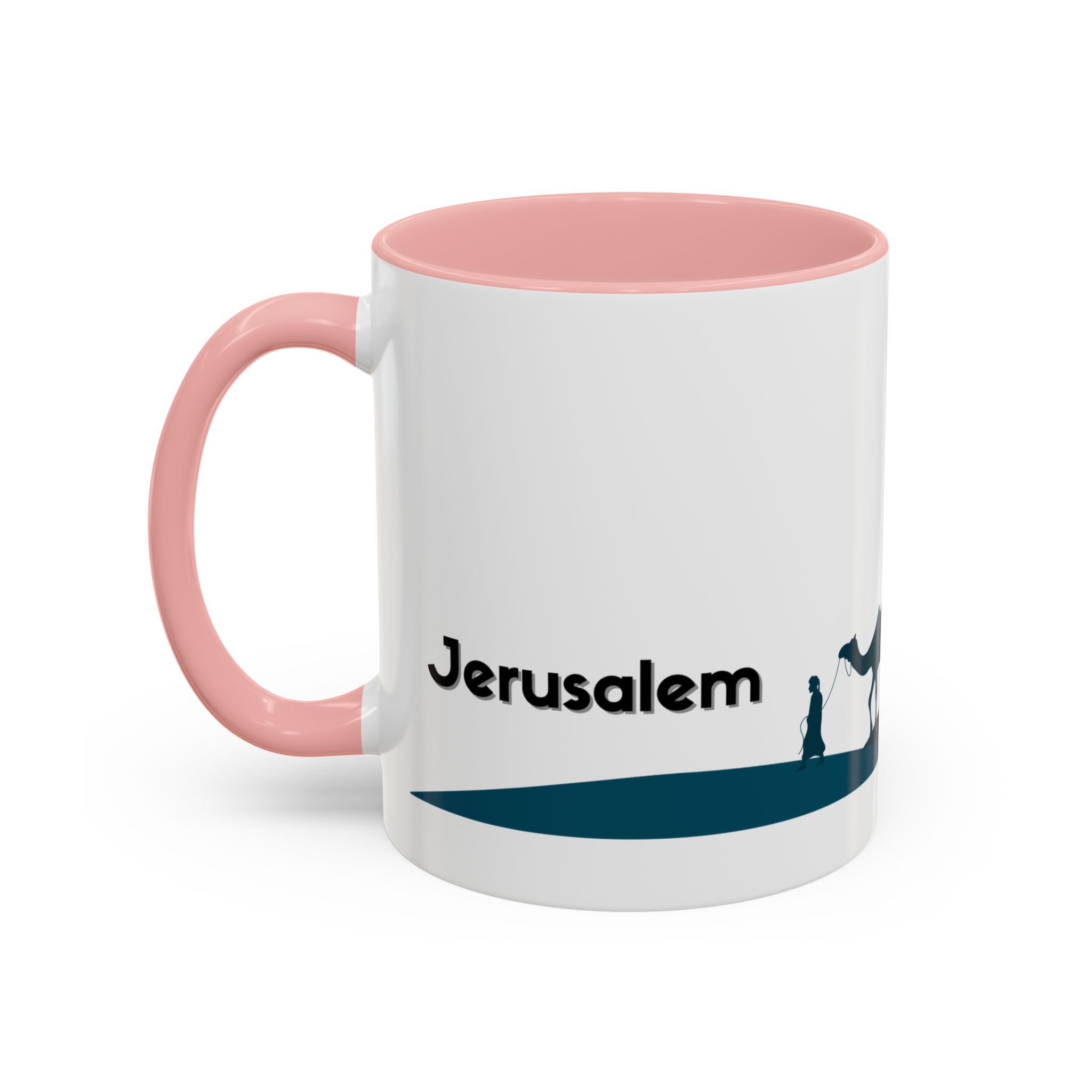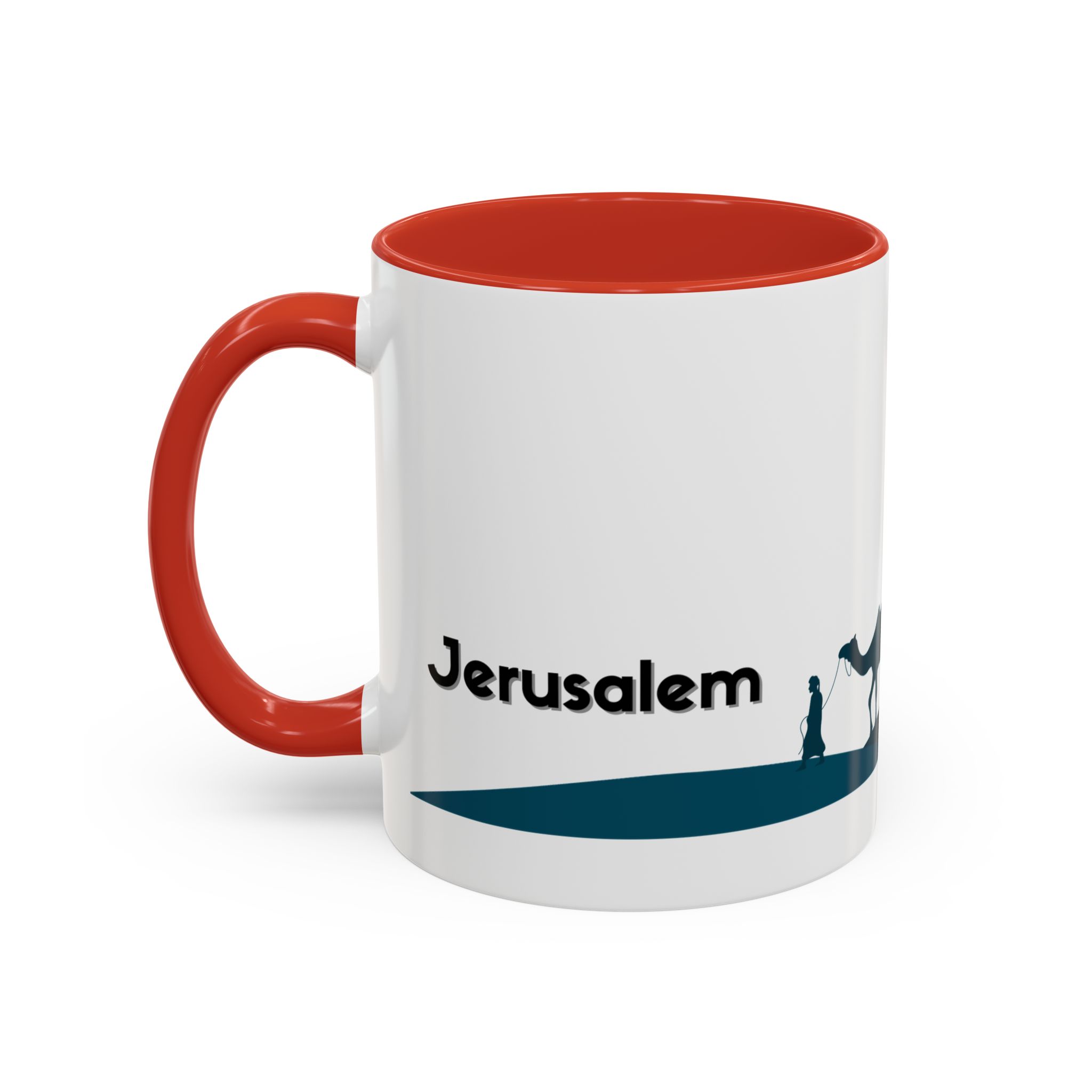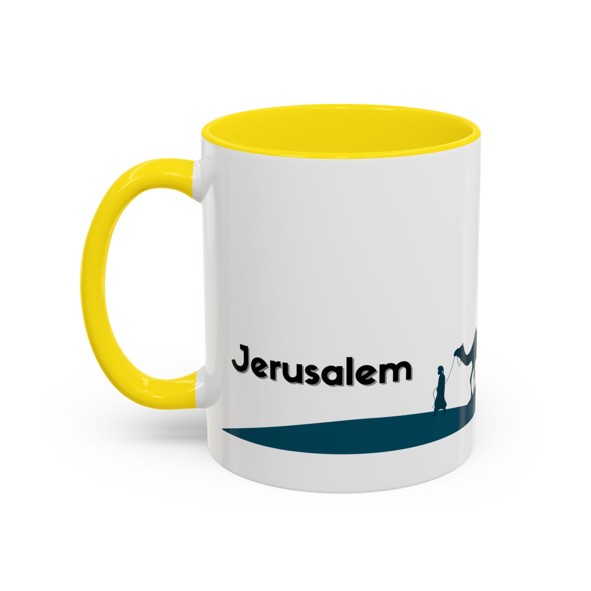 This ceramic accent mug features a panoramic skyline design with a golden dome, minarets, palm trees, and a camel silhouette, creating a calm travel-inspired scene. The glossy white exterior keeps the artwork bright, while the colored interior and handle add a stylish contrast. Durable and practical, it’s microwave- and dishwasher-safe, making it perfect for daily coffee, tea, or quiet moments of reflection. Designed to bring a sense of journey and atmosphere to every sip.