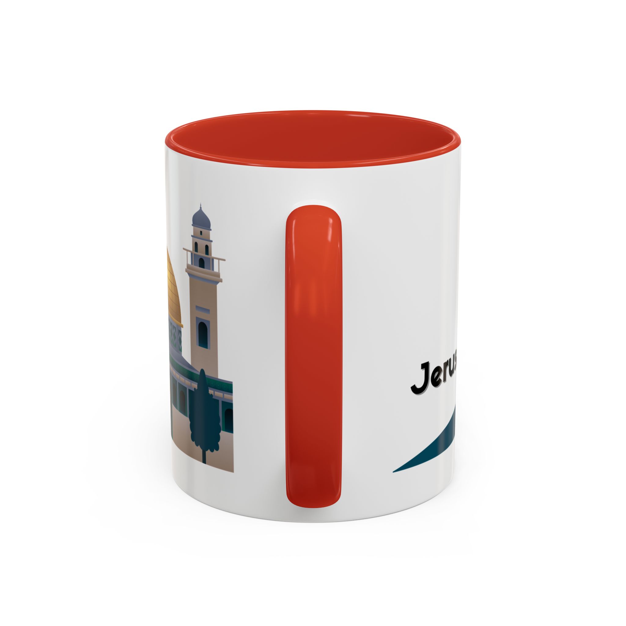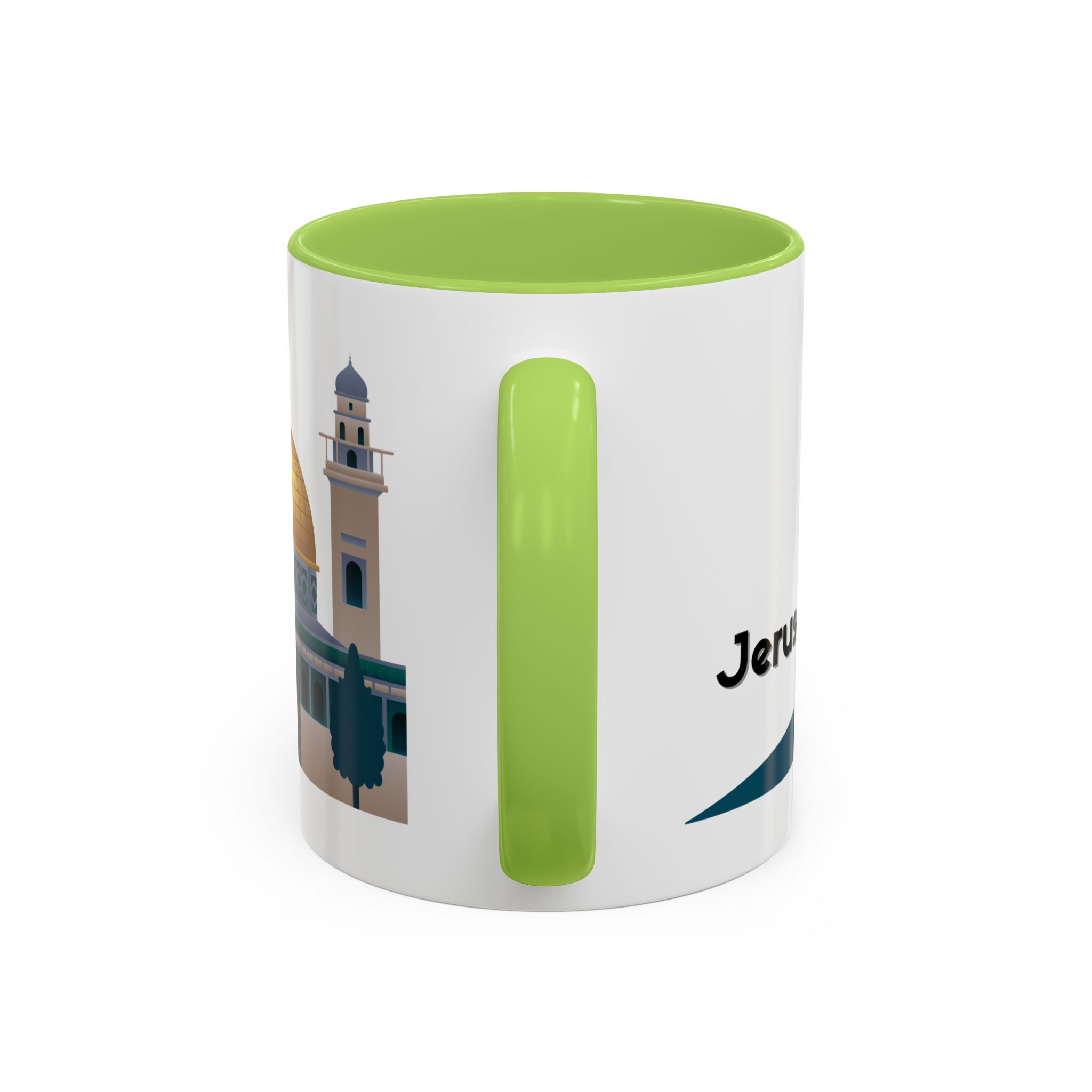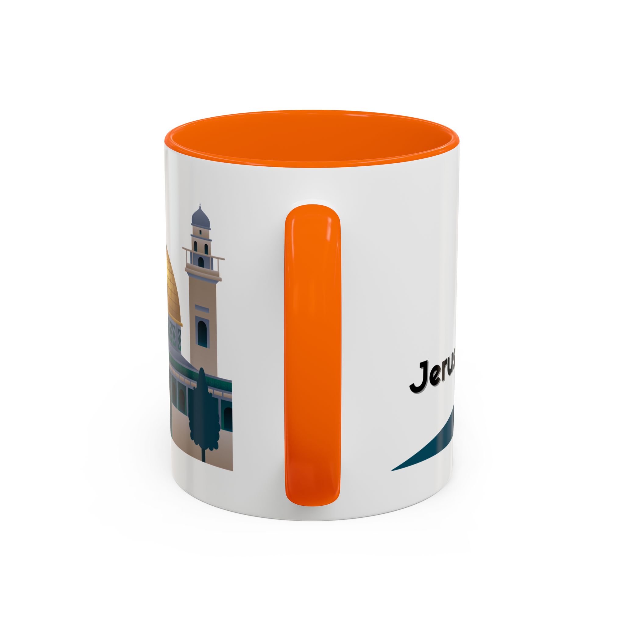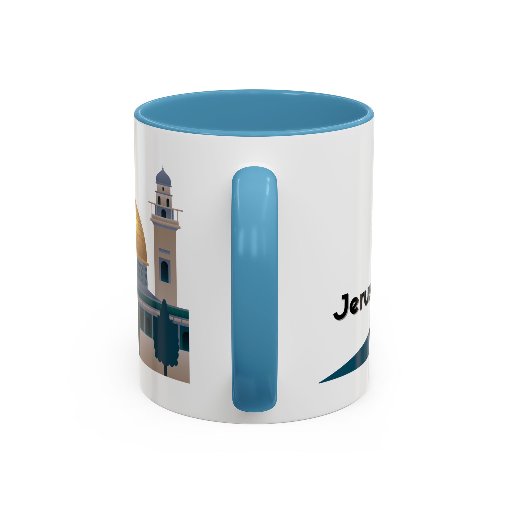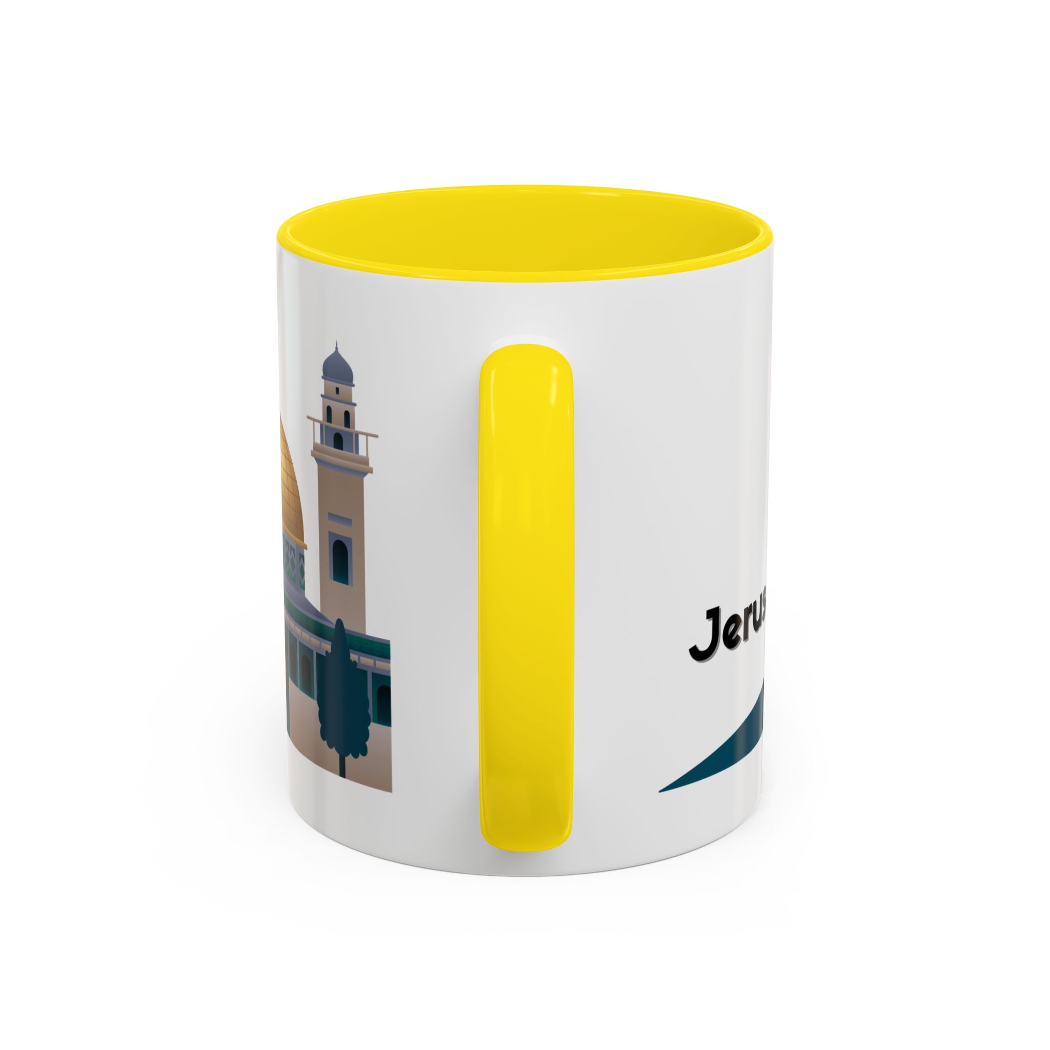 This ceramic accent mug features a panoramic skyline design with a golden dome, minarets, palm trees, and a camel silhouette, creating a calm travel-inspired scene. The glossy white exterior keeps the artwork bright, while the colored interior and handle add a stylish contrast. Durable and practical, it’s microwave- and dishwasher-safe, making it perfect for daily coffee, tea, or quiet moments of reflection. Designed to bring a sense of journey and atmosphere to every sip.